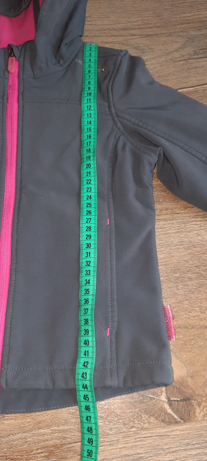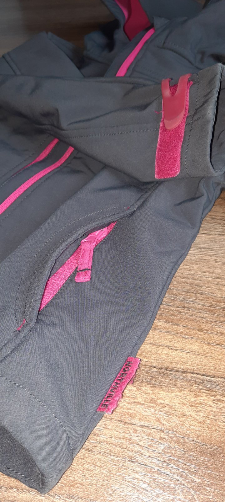 Kapucňa je na pevno, vrecká na zips, reflexné prvky žiaľ sú výrazne zošuchané.Inak plne funkčná