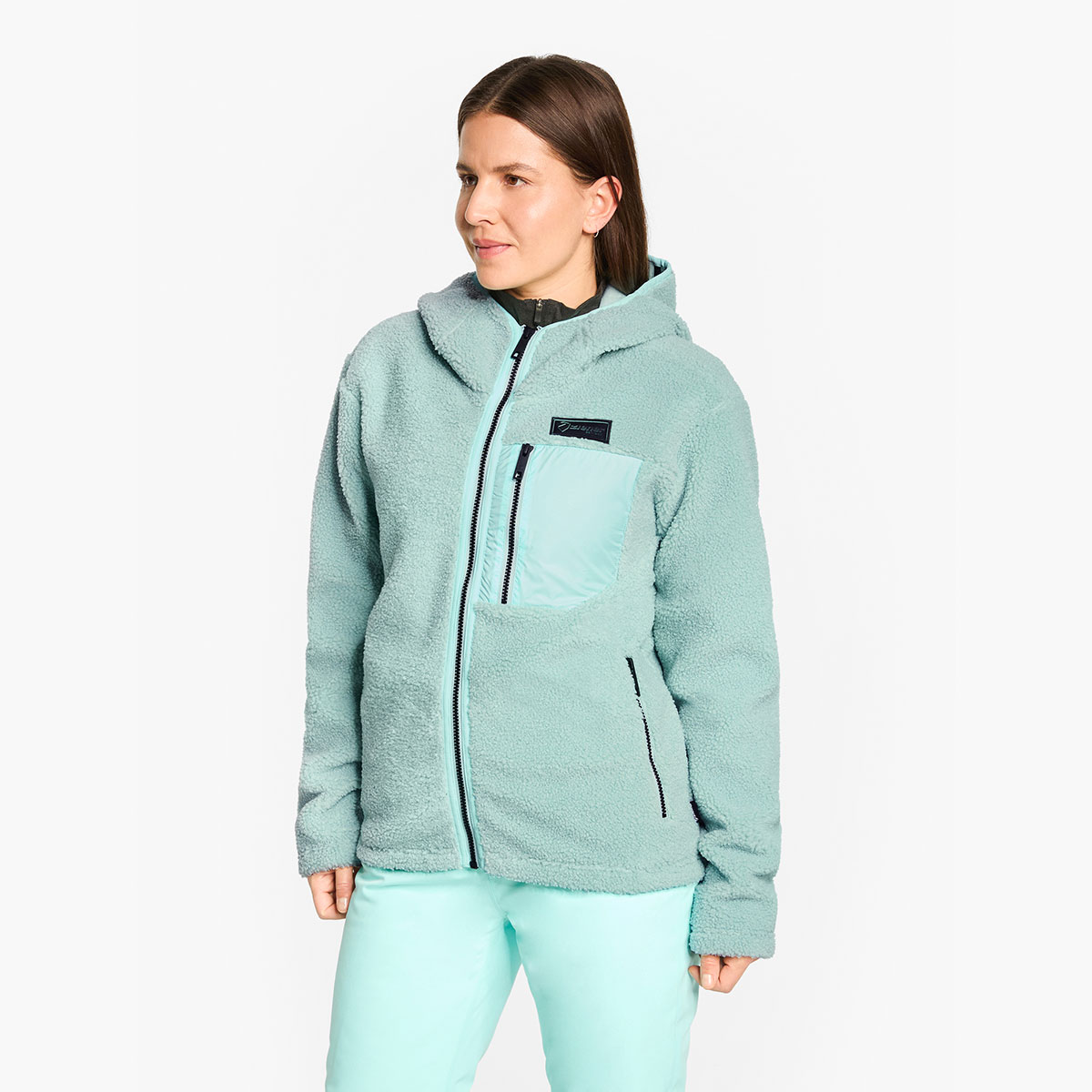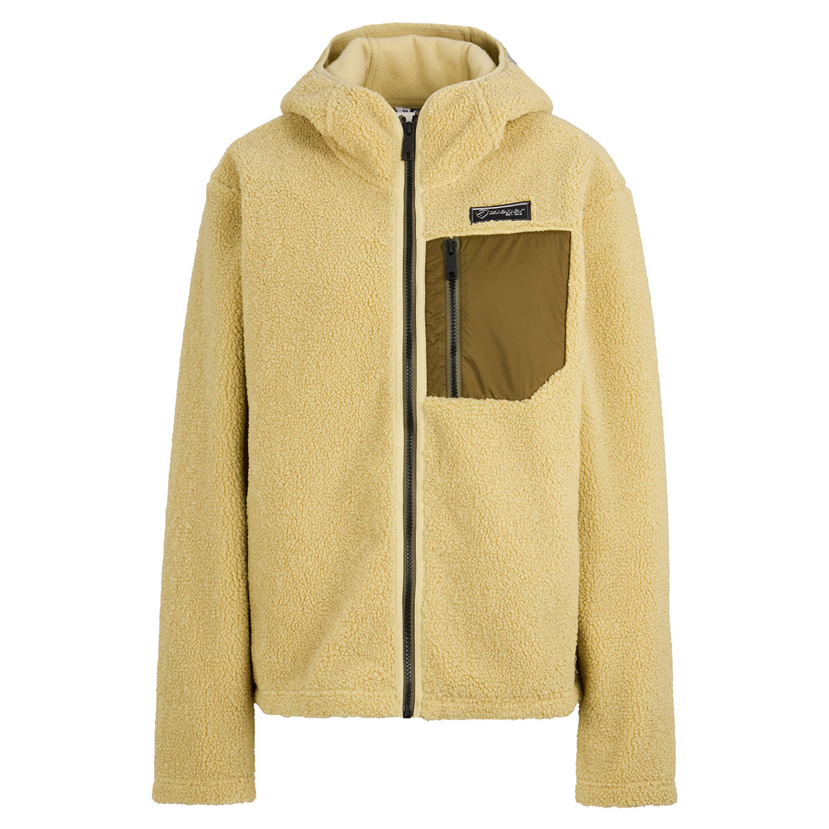 . Medzi ďalšie technické detaily patrí predný zips a pevná kapucňa. Dve bočné vrecká a náprsné vrecko so zipsami poskytujú úložný priestor na vaše potrebné veci. Táto flísová bunda kombinuje funkčnosť so štýlom a útulným komfortom.