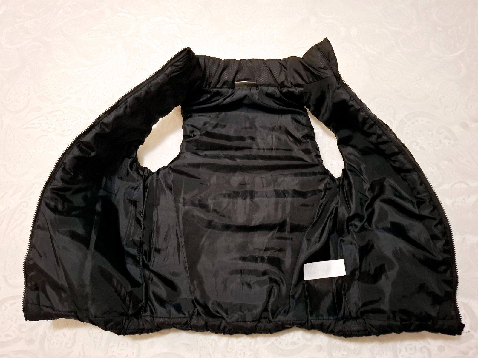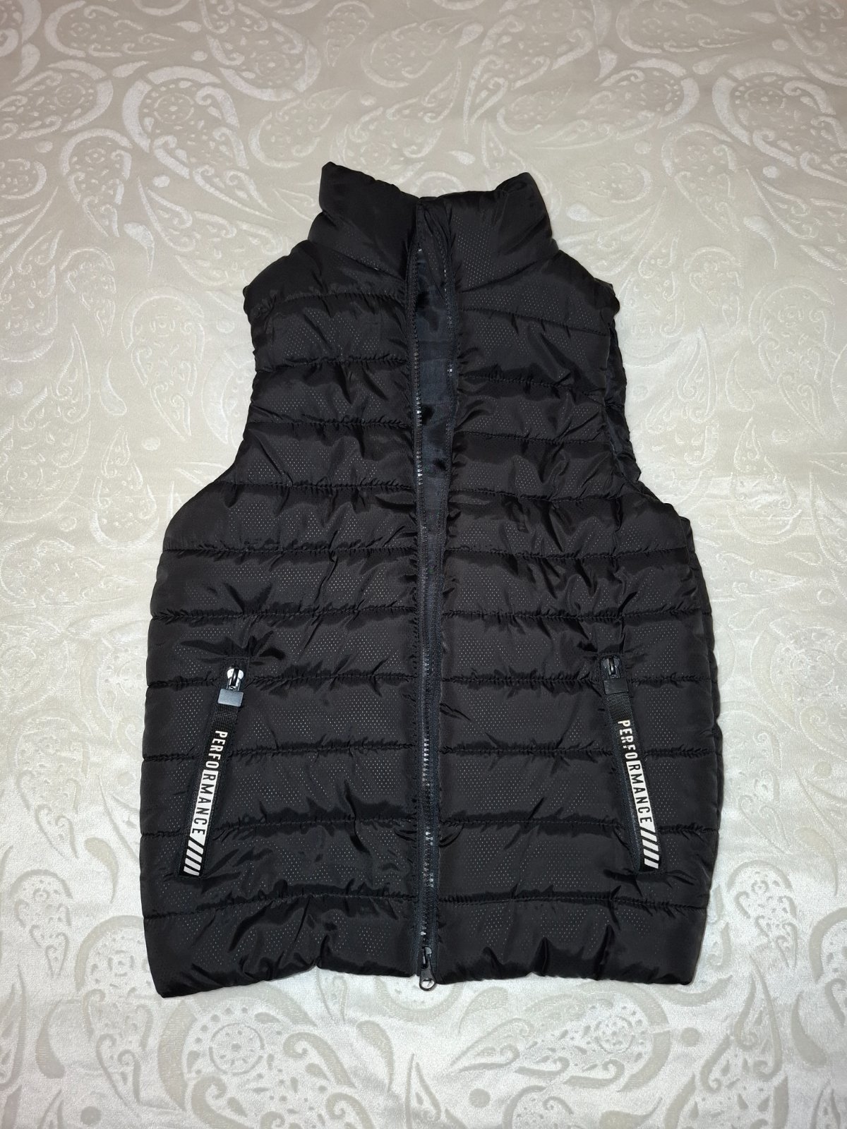 Zateplená vesta vo výbornom stave, rozmery : šírka pod pazuchami je pri natiahnutí 45cmx2 a dĺžka 56,5cm.