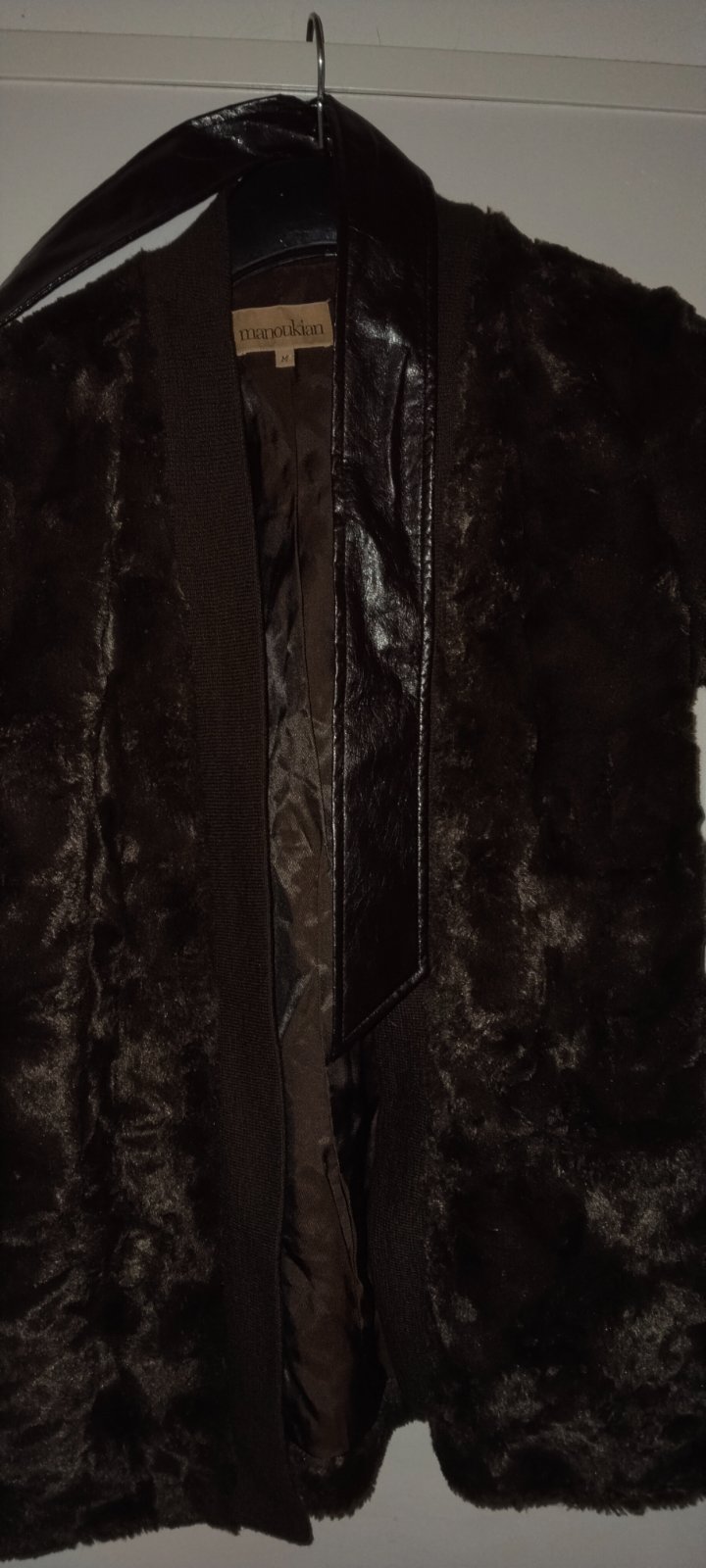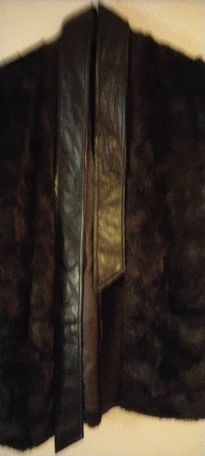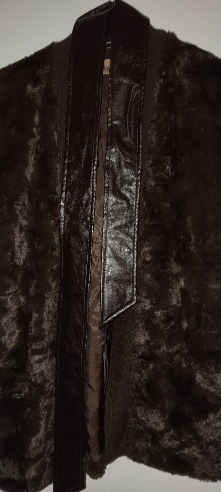 Kožuštek tmavohnedý bez rukávov s opaskom
