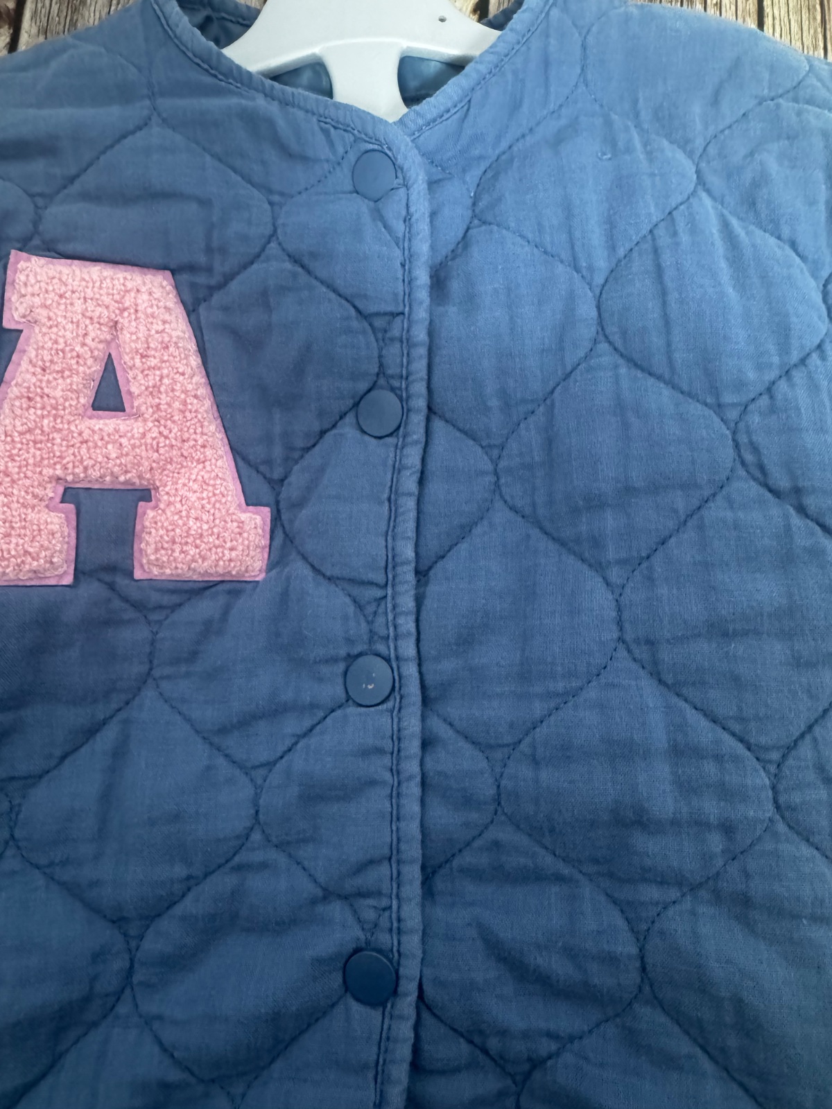 zateplená, vhodná na jeseň, veľmi pekná bundička do pásu typu bomber, rozmery: šírka 36,5, dĺžka 39,5, rukáv 35,5cm, trochu väčšia, nositeľná aj do veľkosti 104