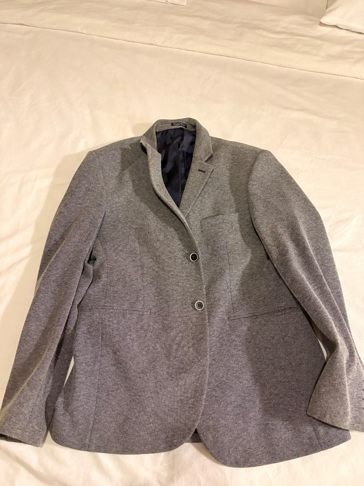 Dobrý nosený stav. Kabát je tenký, nezateplený. Teraz pri fotení som si všimla na lakťovej časti jeden mini fľak - neviem od čoho môže byť. Nič veľké, ani do očí bijúce, no je tam. Zohľadnené v cene