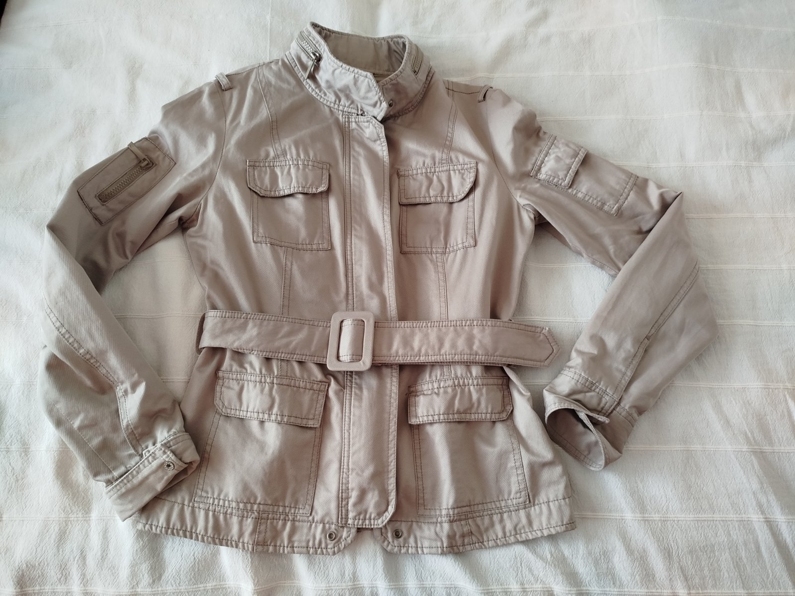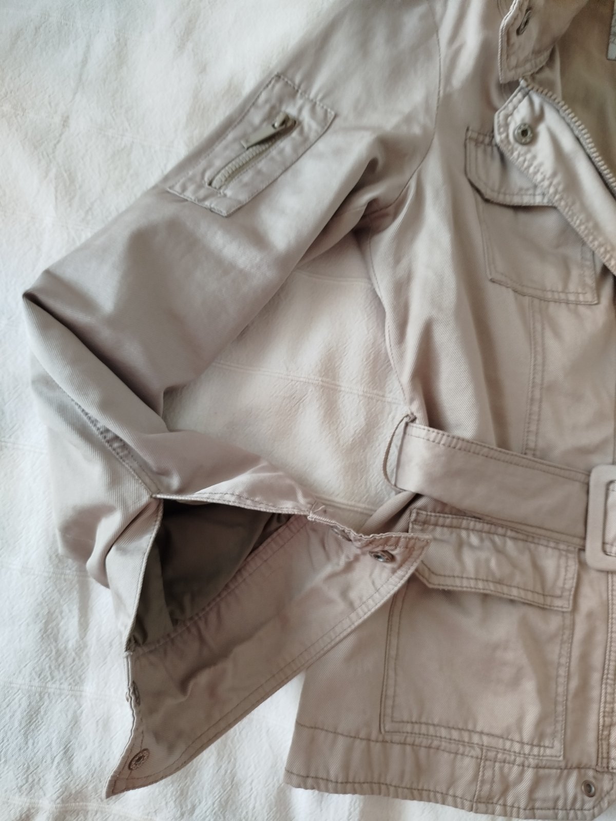 Prepracovaný kabátik, sako. Podšitý, vhodný na jar, jeseň, alebo chladnejšie letné večery. Vhodný k nohaviciam, šatám... Ku športovému aj elegantnému outtfitu. Top stav. Mne je bohužiaľ malý ... Značka Kenvelo.