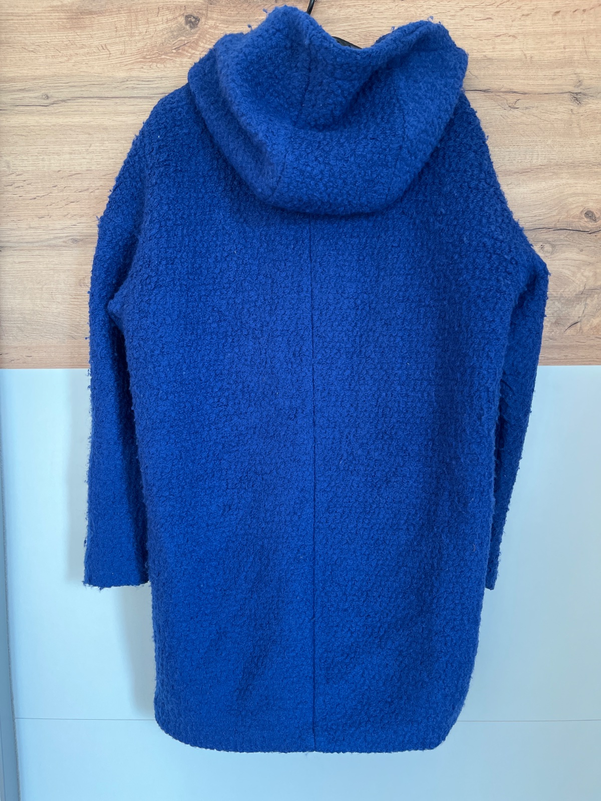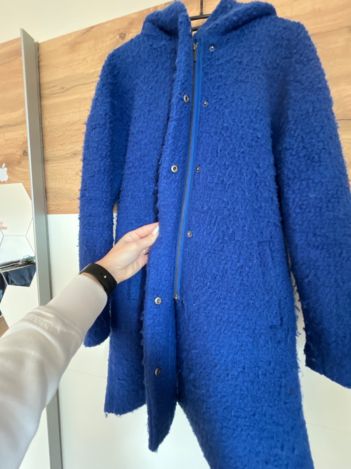 Posuniem ďalej nosený kabát, kupovaný v Butiku MooDo. Veľkosť XS, sadne aj na S. Chyba jeden cvok.