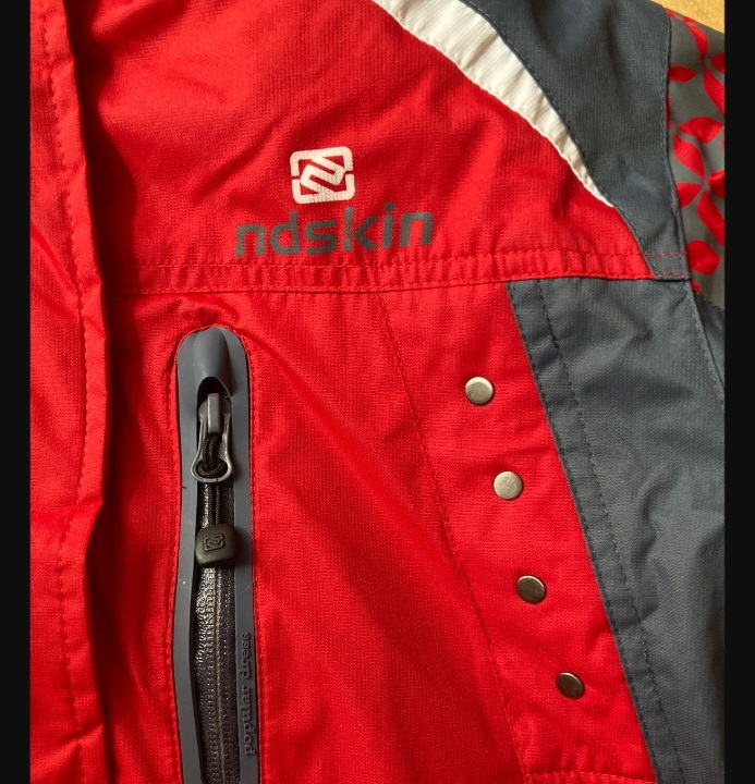 Nosena, ma par poskodeni, odparane vrecko a naspodku stahujucu gumicku vytahanu. Da sa opravit. V pase je stahujucq gumicka, ma kvalitny obojstranny YKK zips a kapucnu.