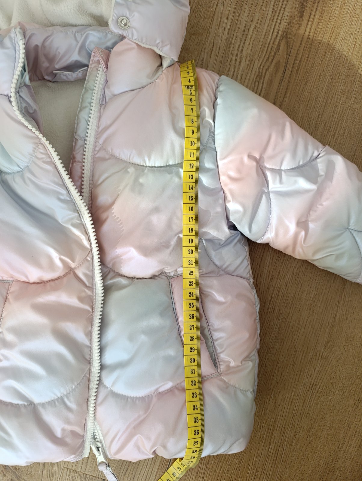 Bunda je ako nová, nadýchaná, bez akéhokoľvek poškodenia. Zateplené vnútro bundy flisom okrem rukávov a kapucne. Rozmery: Dĺžka (od ramien po spodok) - 34cm Dĺžka rukáva (od krku po koniec ruká...