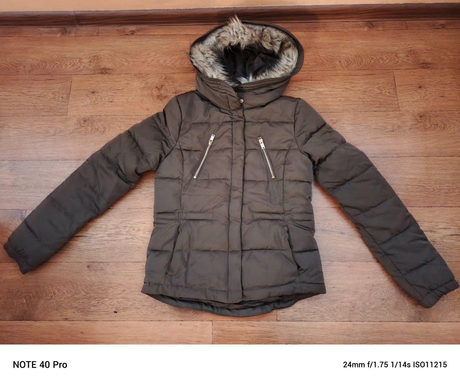 Párkrát oblečená, zatiahnuté futro - nafotené. Ináč je bunda v poriadku. Uvedená veľkosť je 170, ale kľudne aj S menšie M. Dĺžka 79cm - zadná strana 84cm Dĺžka s pazuchy 58cm Rukáv od krku 77cm ...