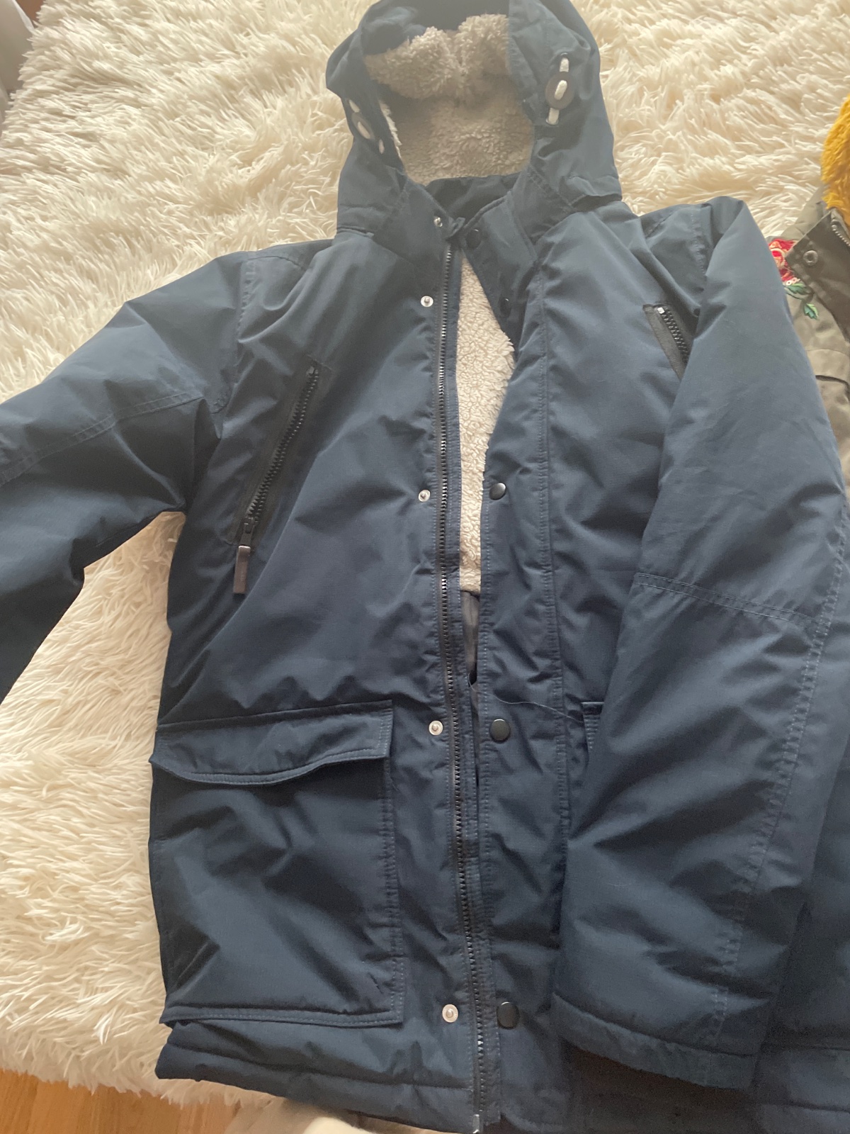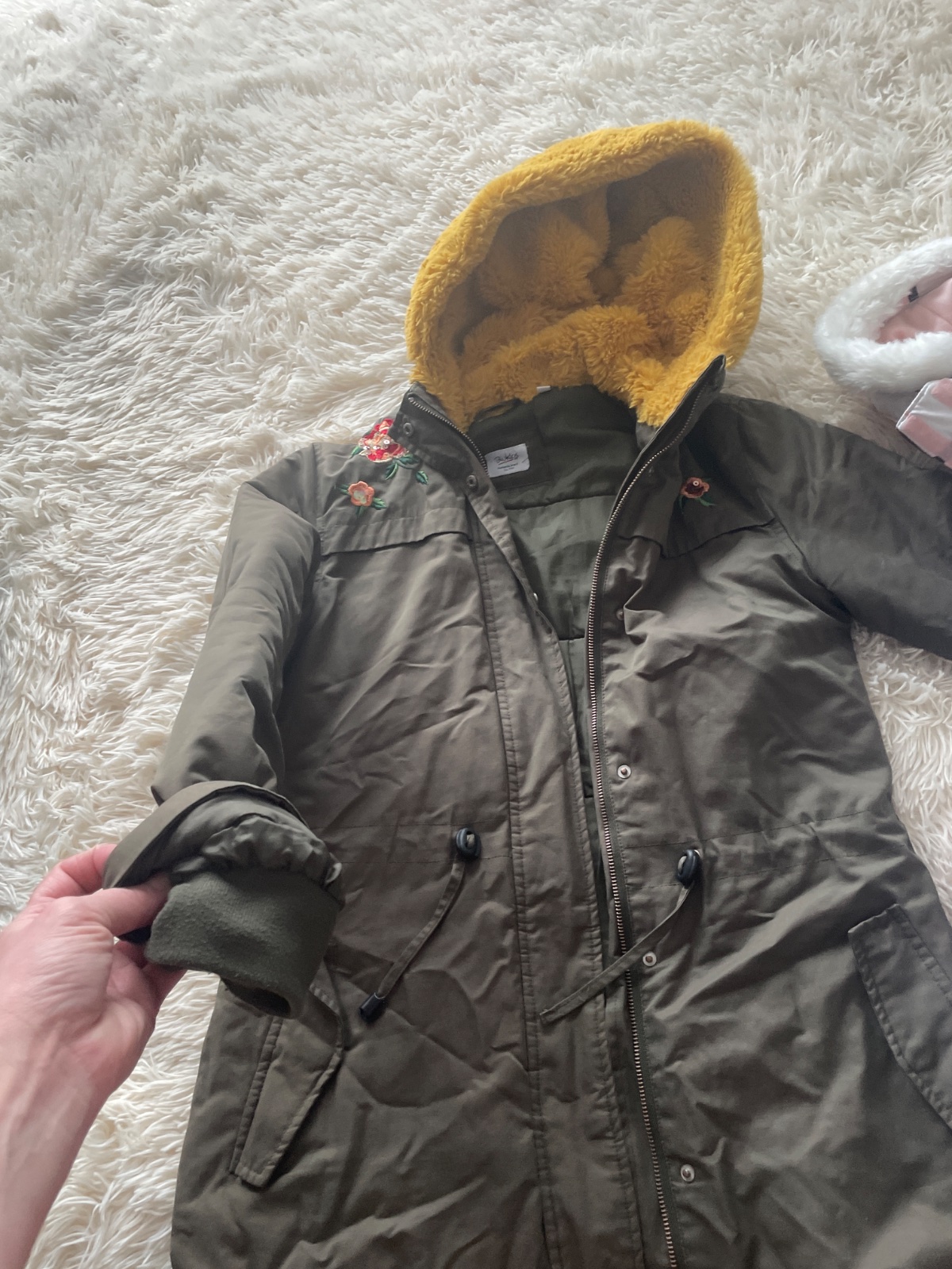 2x oblečená bez poškodenia, ,predĺžená, vysoký golier, chýba kapucňa, 165 -14rokov, je na cvoky , dĺžka69cm šírka 45cm rukáv 66cm , ch.