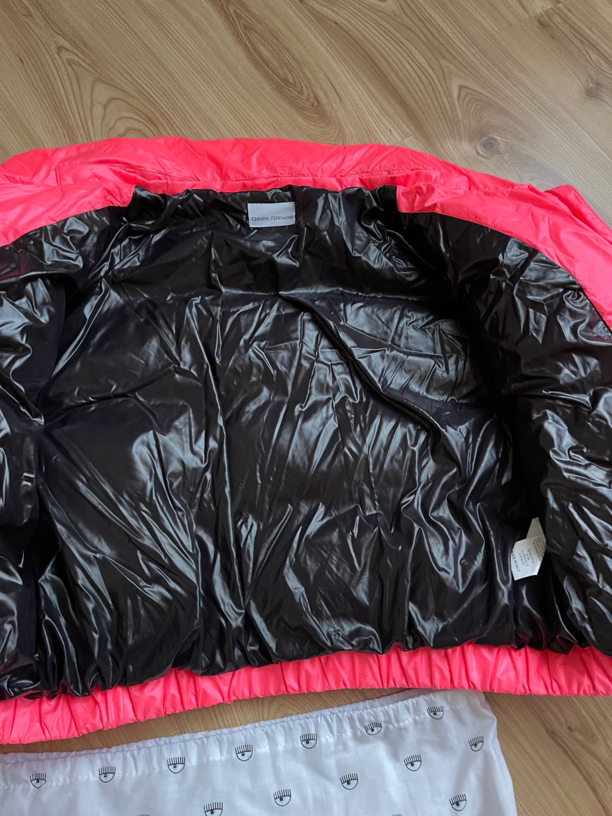 neonova perova puffer bunda, top stav oblecena parkrat, PC 600