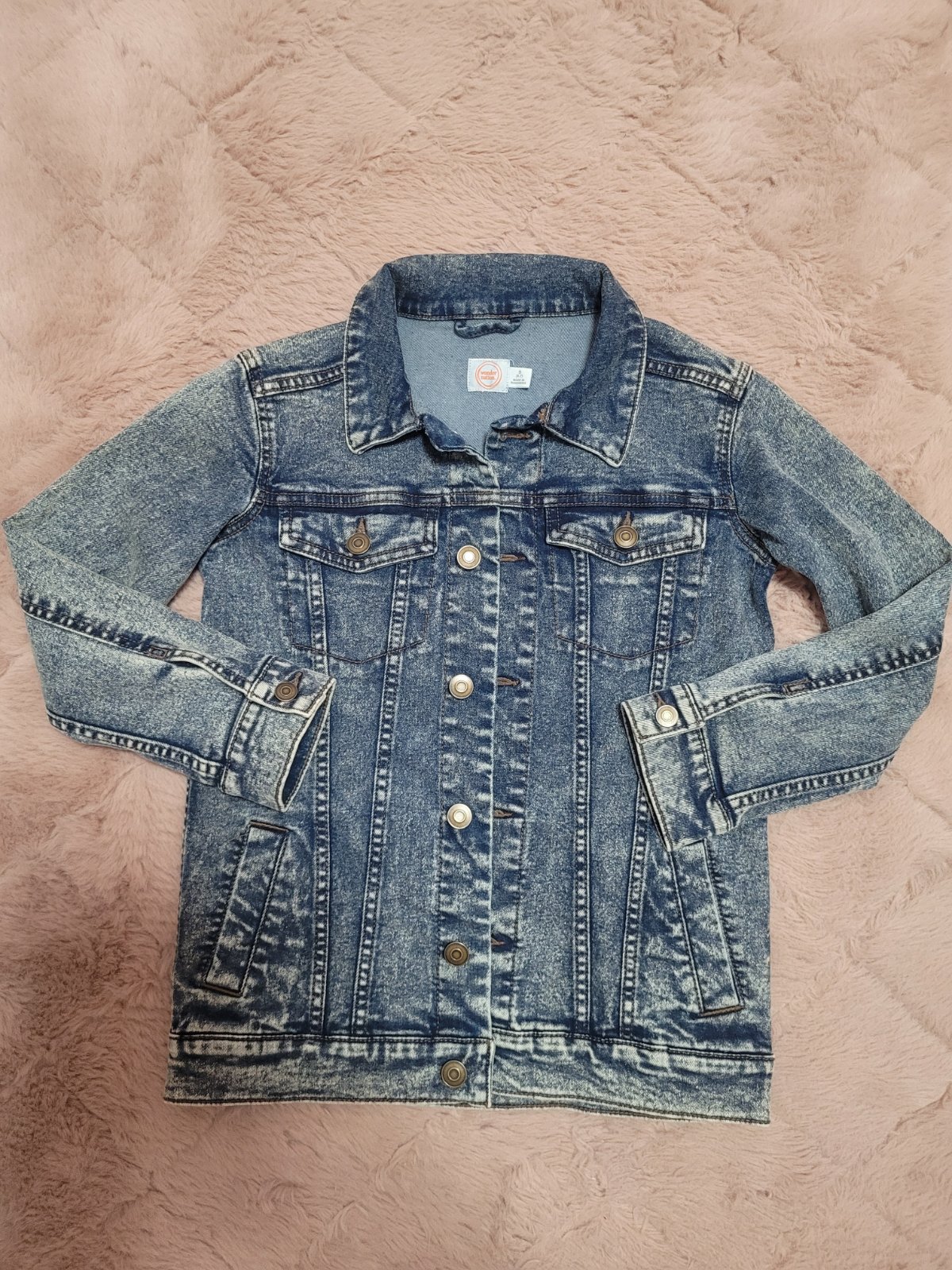 Nadherna vybijana riflova bundicka.Top stav. Velkost XS,S. Znackova znacka rossodisera. Povodna cena 90 eur. Minimum nosena cca 3-4 krat. Sirka v podpazi 40cm, uplne dole 33 cm. Celkova dlzka od kr...