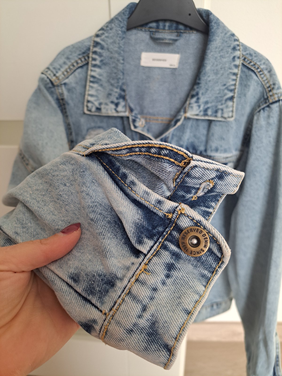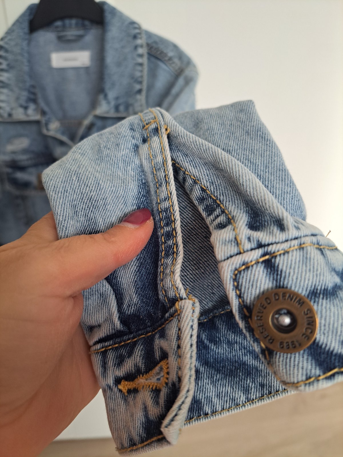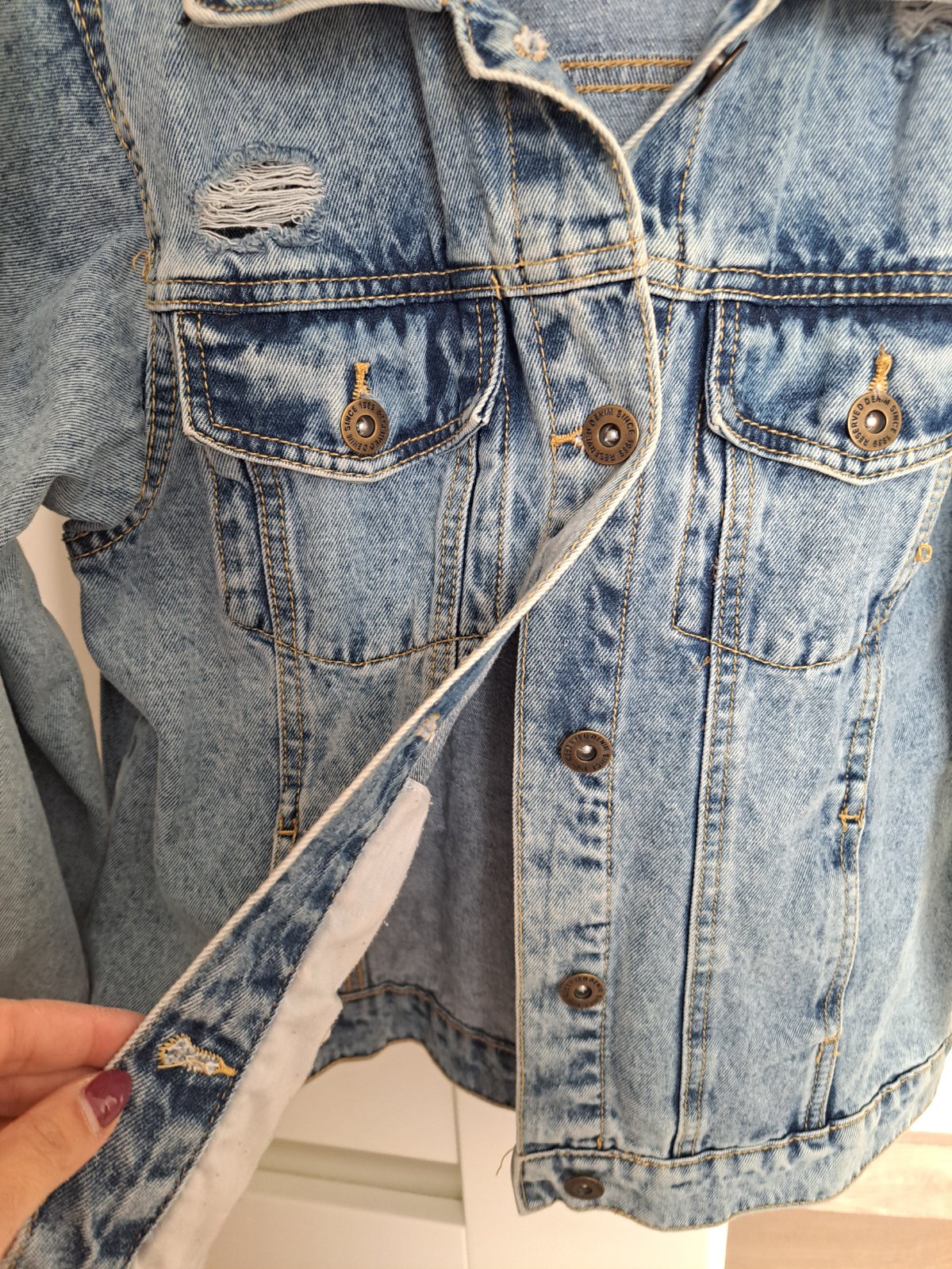 Roztrhaná denimová bunda v dobrom stave. Bez poškodenia. Rozmery na foto.