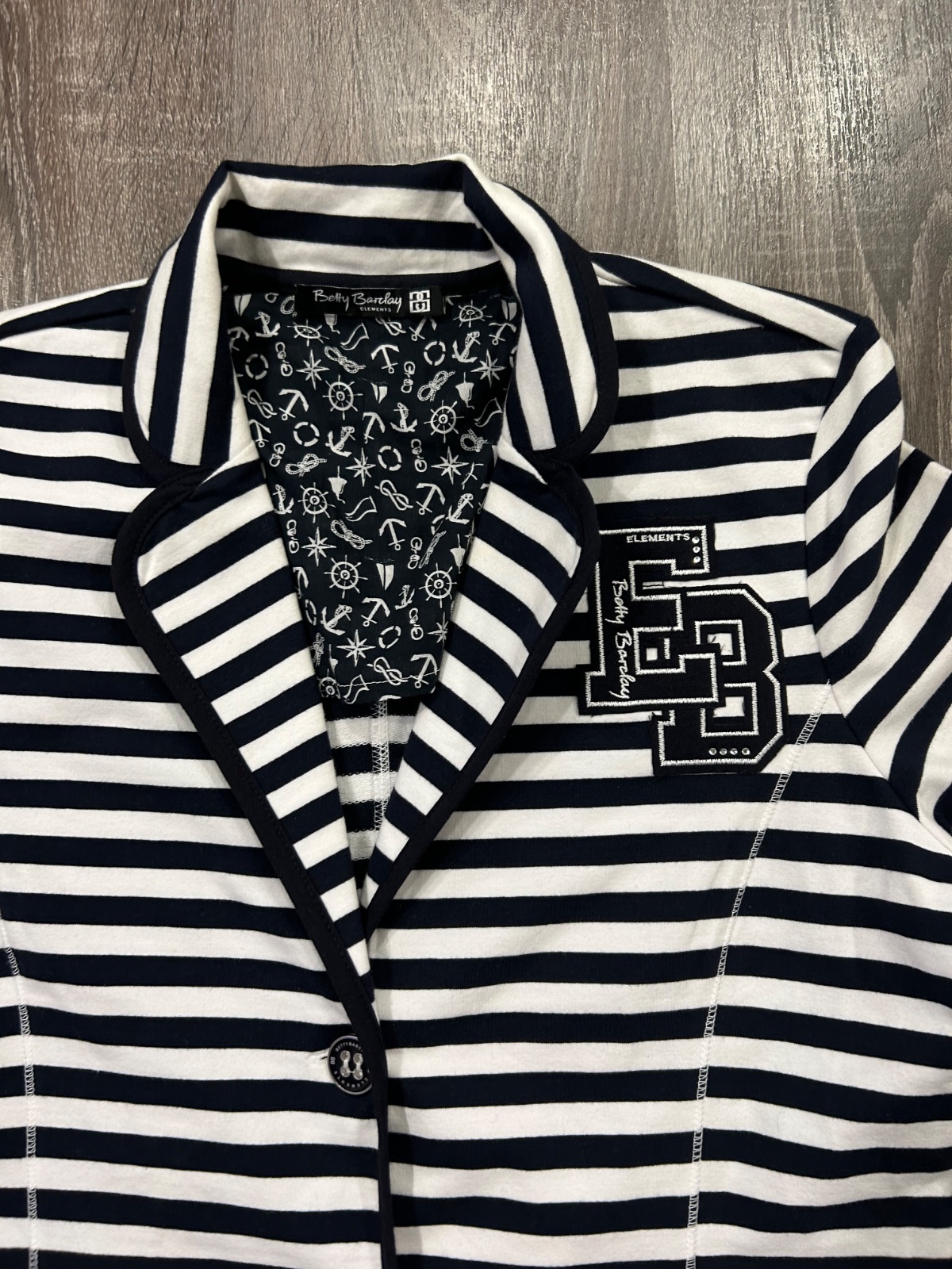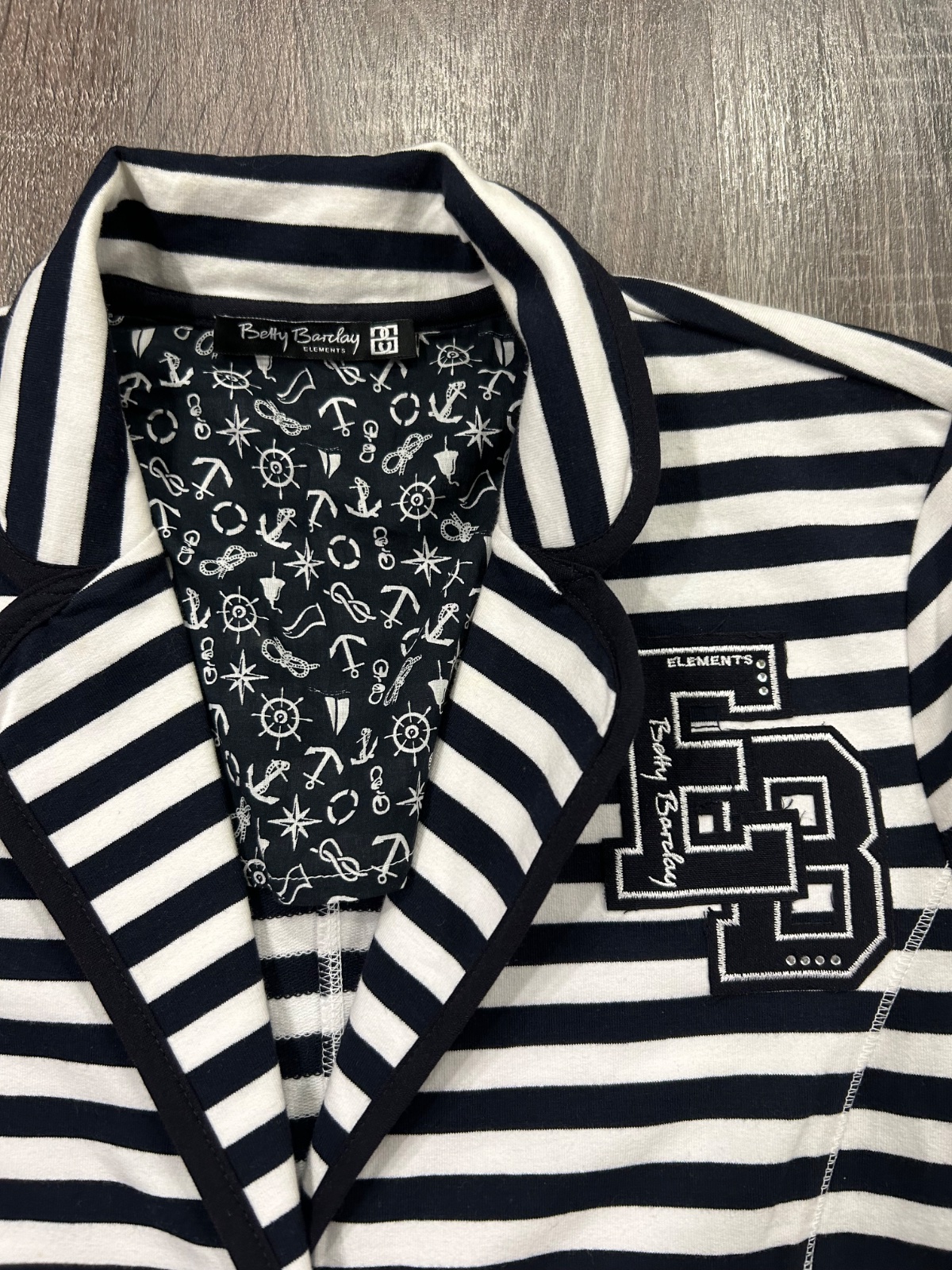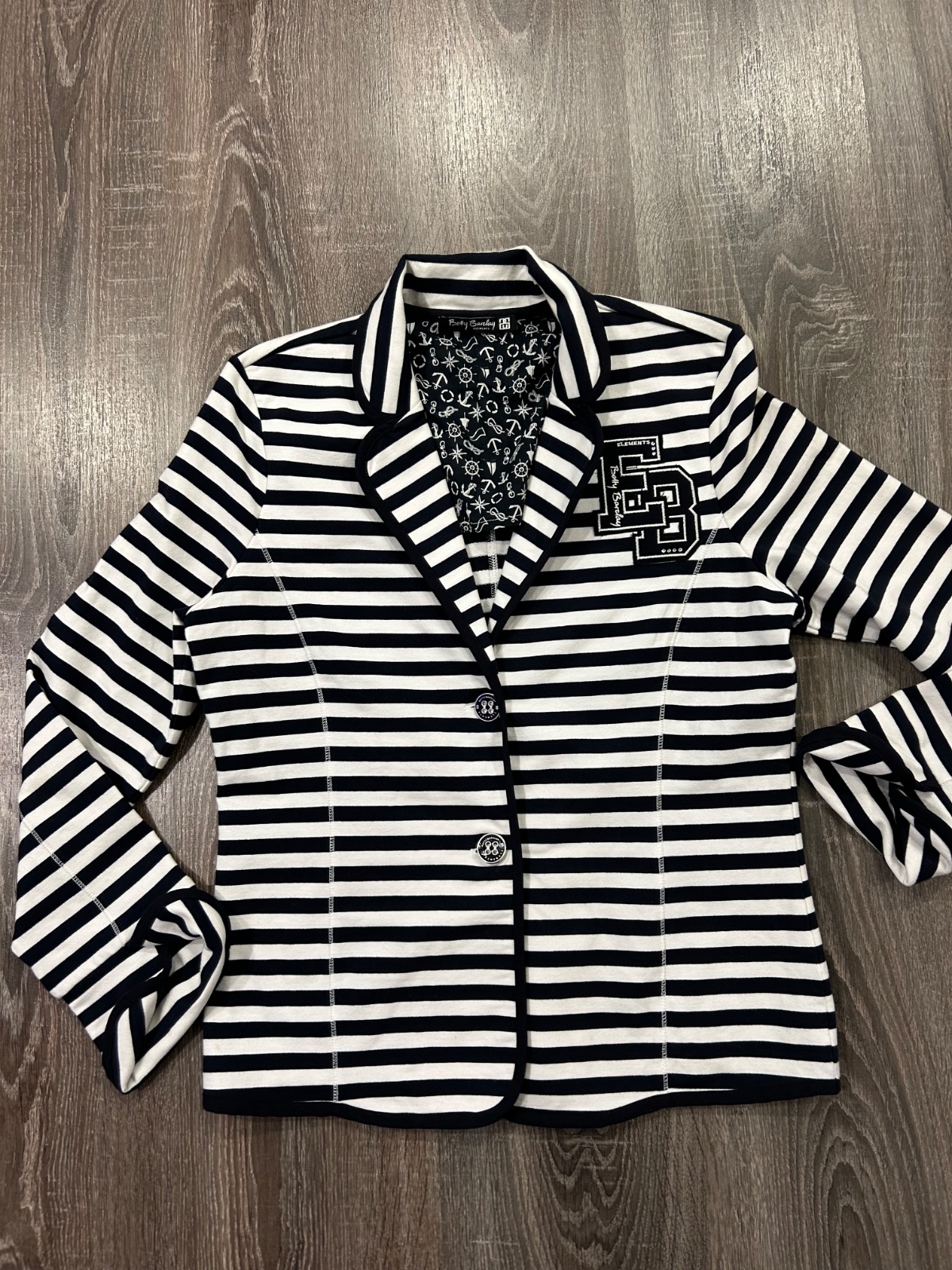 06.Betty Barclay damske pasikave sako,vo velkosti M,farba tmavomodra ….fakt peckove…bavlnene.Dlzka je 62cm,dlzka rukava od krku je 77cm a sirka v podpazusi je 49x2cm