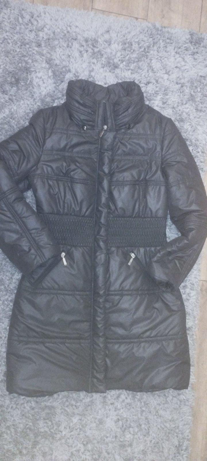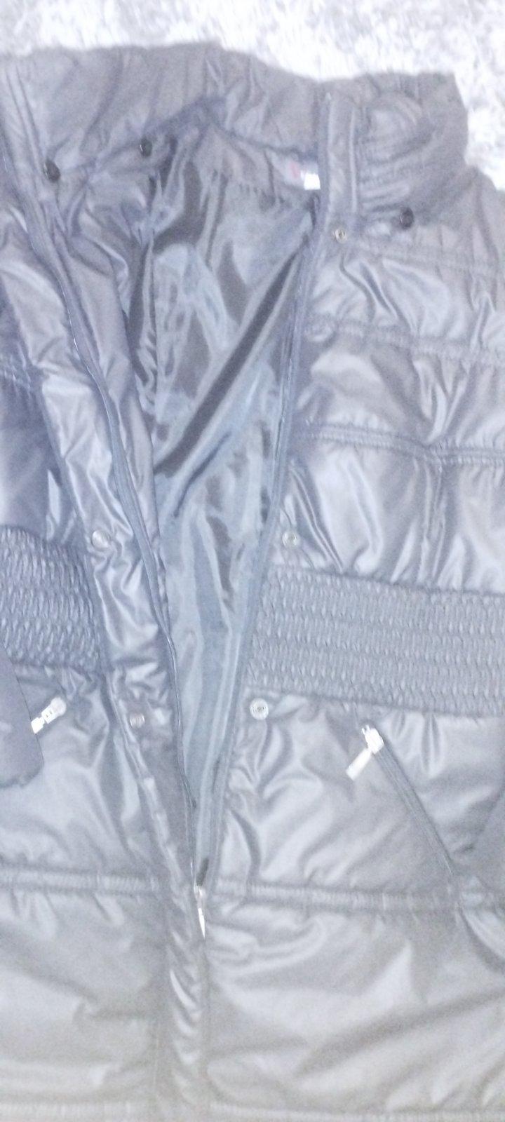 Kvalitná čierna pierková bunda, zapínanie na zips, podšitá, super stav...chýba kapucňa, na golieri je prišitá druhá časť zipsu, skrytá pásikom.... šírka v podpazuší 58x2 cm, pás 52x2 cm, 65x2 cm, ...