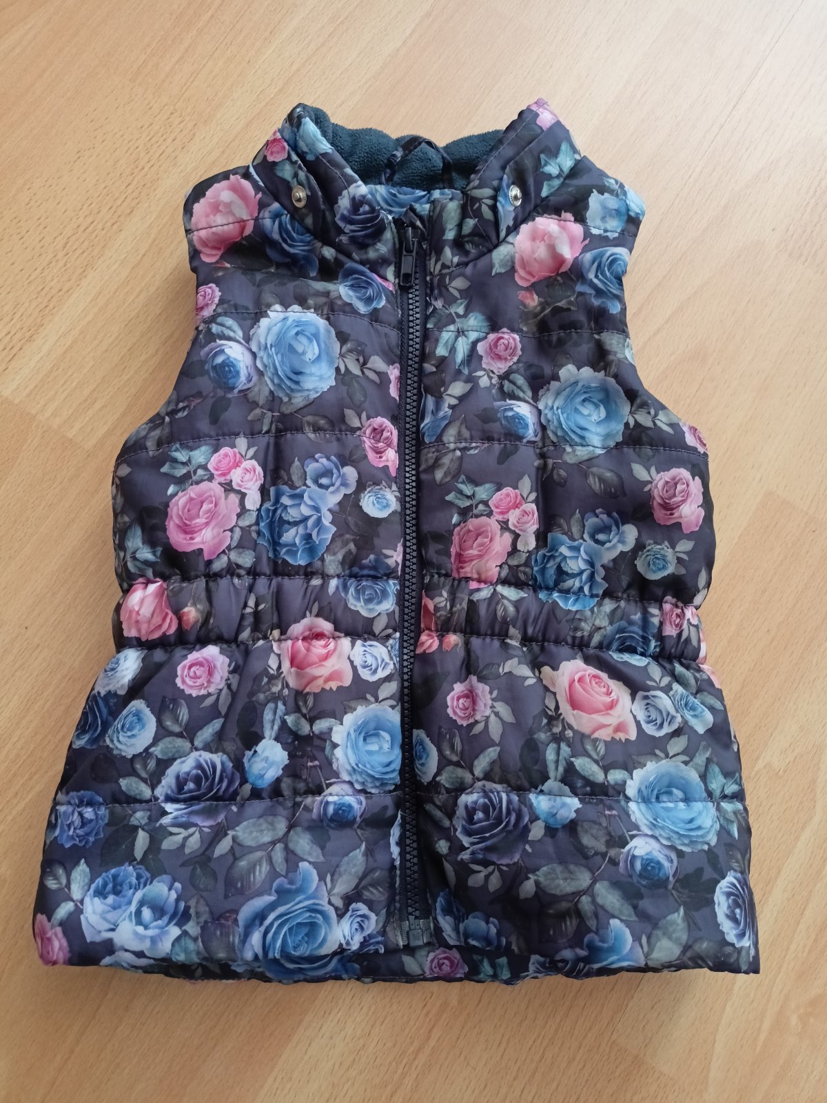 Dievcenska vesta, z vnutra zateplena fleecom. Chyba kapucna.