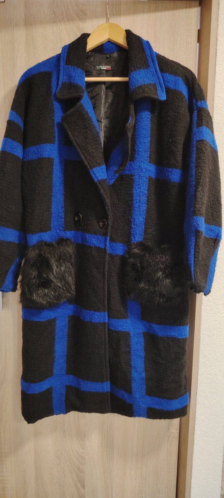 Predám krásny prechodný kabát veľ. UNI sedí tak na S ako oversize , M, L. Modrá farba je naživo tmavšia ako na foto, farba sa nedá dobre zachytiť. Je vo výbornom stave.