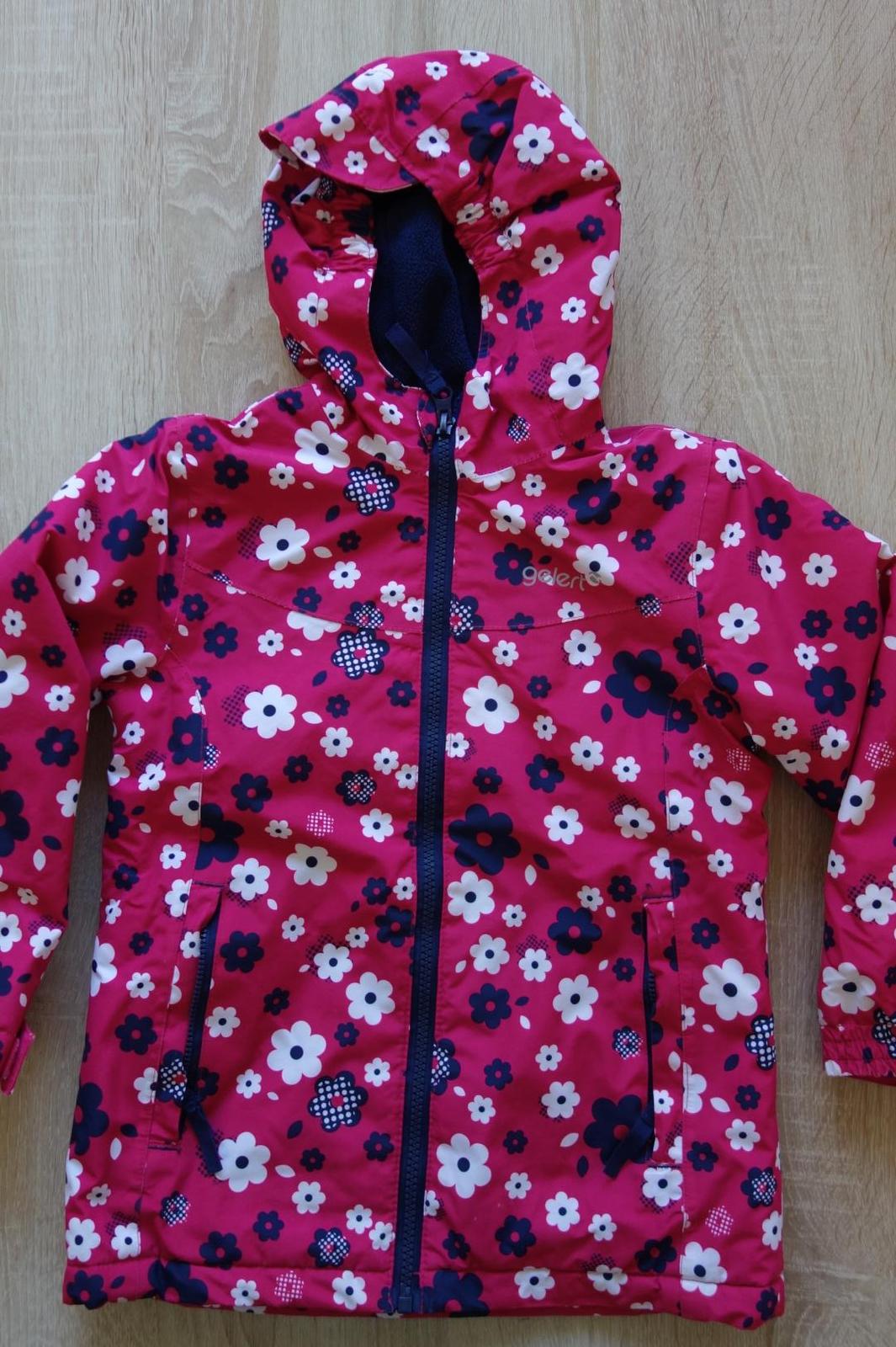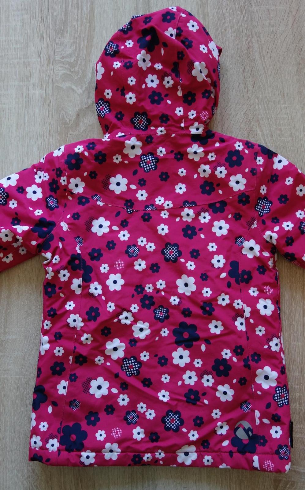 Prechodná bunda v dobrom stave veľkosť na visacke 110 - 116. Má malú dierku na zadnej časti rukáva, je to málo viditeľné. Zips plne funkčný. Dĺžka chrbta 49 cm, dĺžka rukáva 40 cm. Kapucňa je napevno. Vnútro má teplý flís. Vrchný materiál je softshell. Je úžasná, dcéra ju veľmi rada nosila, bola teplučká, nepremokavá na prechodné obdobia.