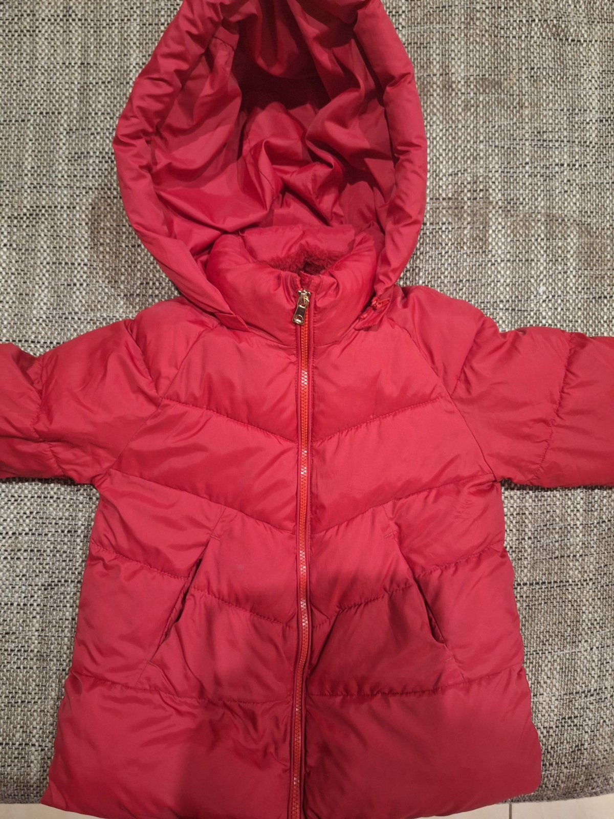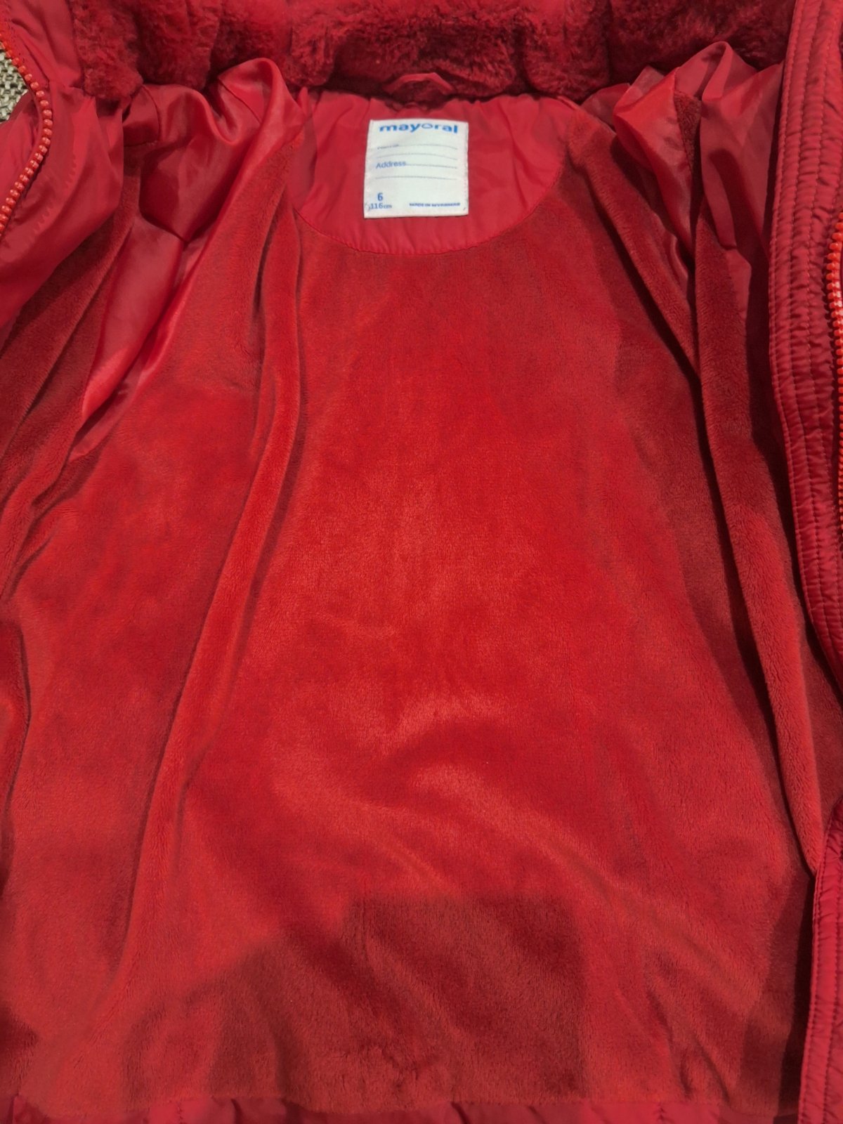 Super stav, párkrát oblečená bundička Mayoral v krásnom dievčenskom strihu. Má množstvo prepracovaných detailov, odnímateľnú kapucňu. Super vyzerá oblečená. Výrazná červená farba. Zvnútra teplá po...
