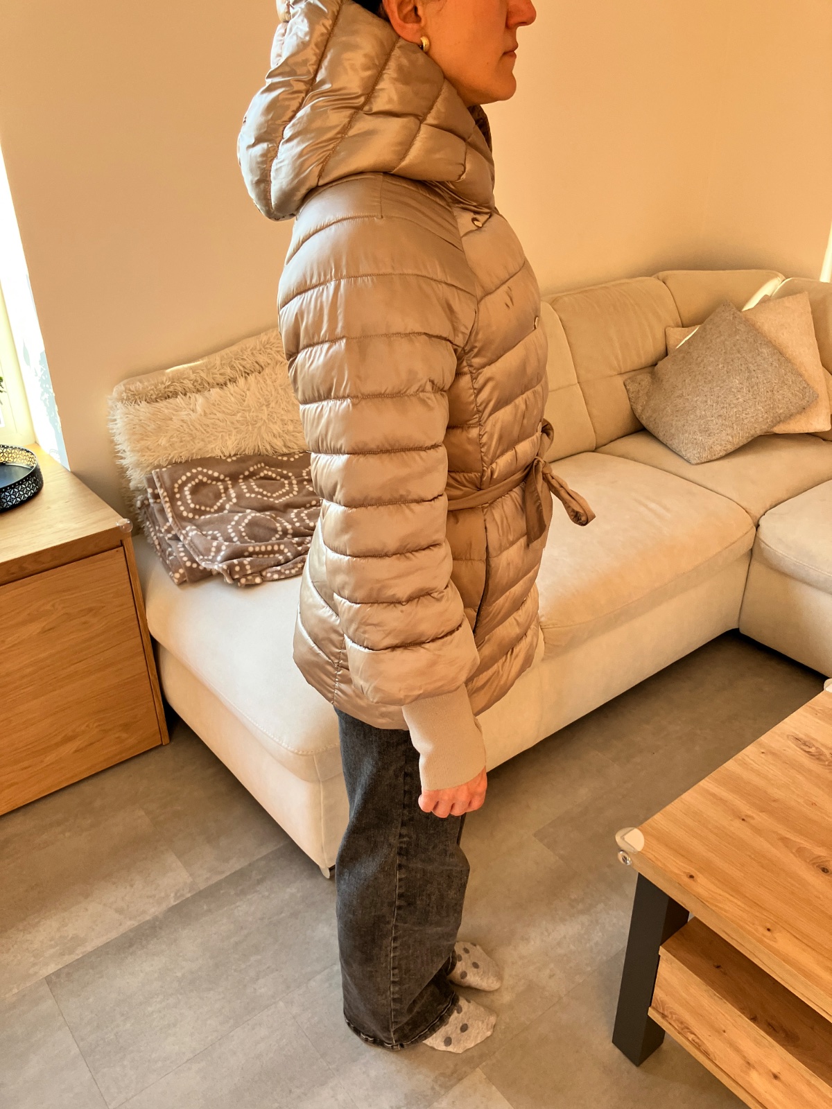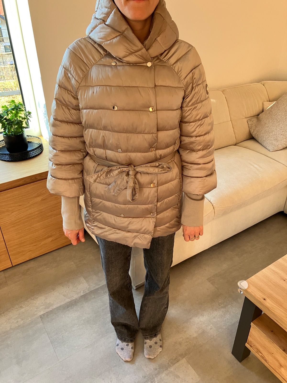 Ponúkam na predaj štýlovú prechodnú bundu, je to veľkosť 32, ja nosievam S a sadla mi. Je vhodná na prechodne obdobie resp. teplejsiu zimu, nevymienam.