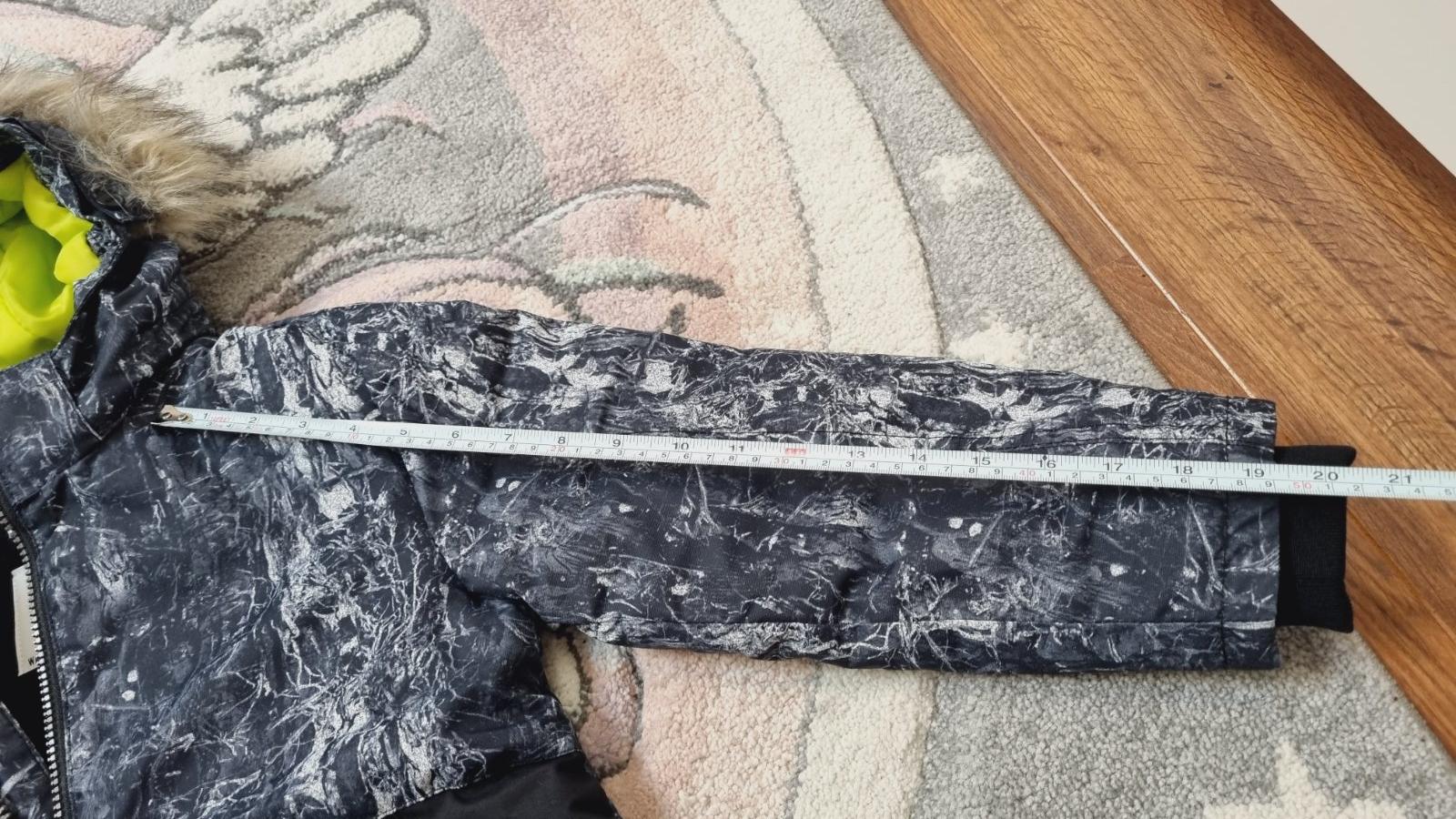 Teplá dlhšia zimná bunda, parka. Veľkosť 122, 7-8 rokov, má odnímateľná kapucňa, 4 vrecka, zapínanie dvojité na zips aj cvoky. Veľmi dobry stav, len jeden cvok suchnuty.