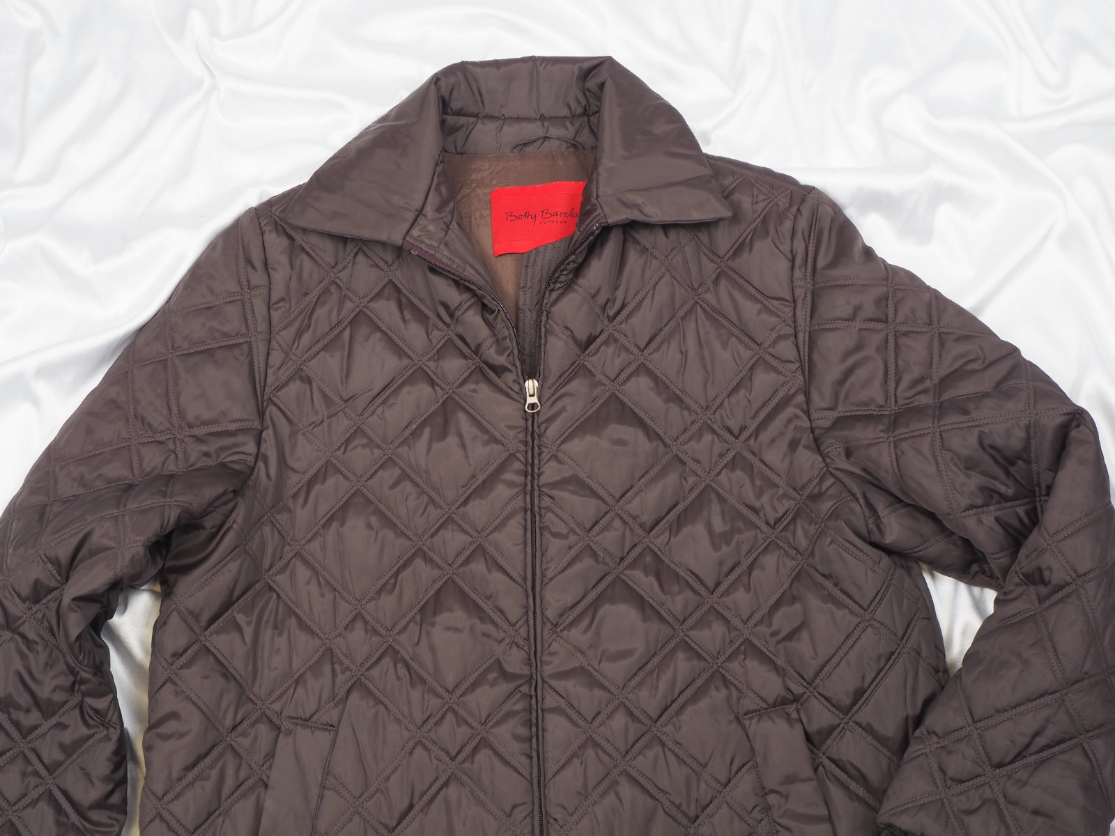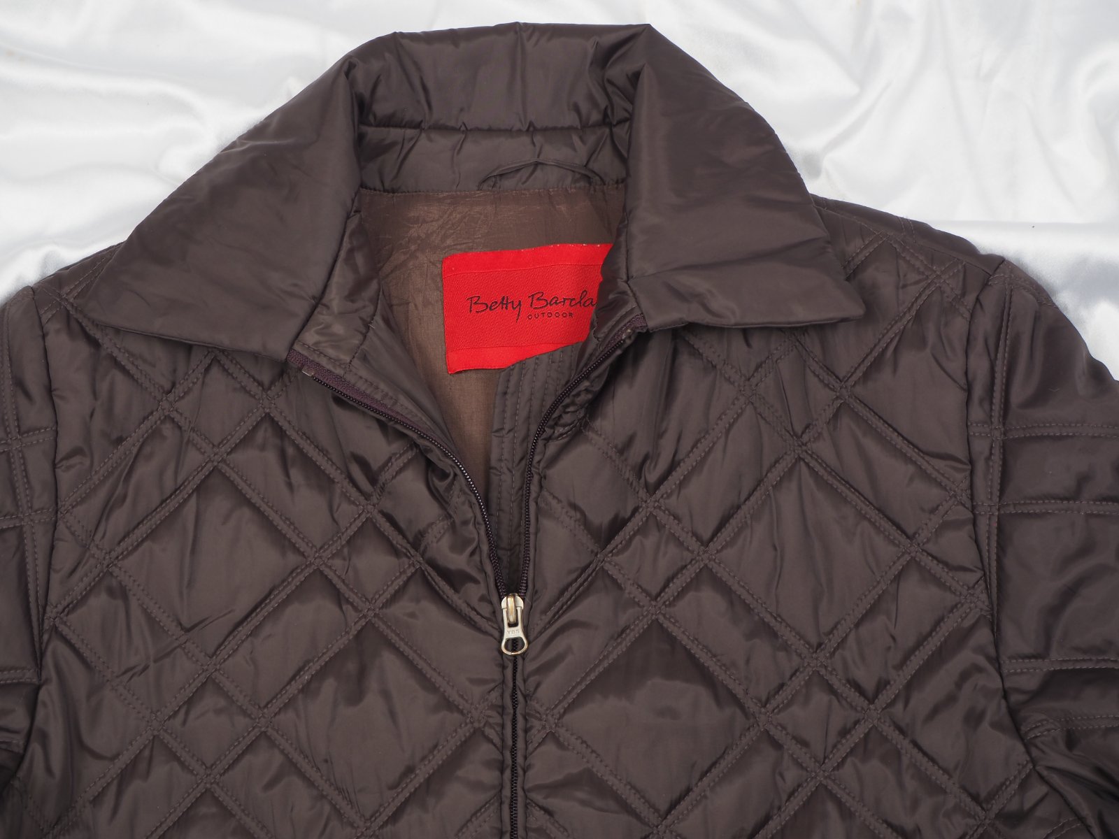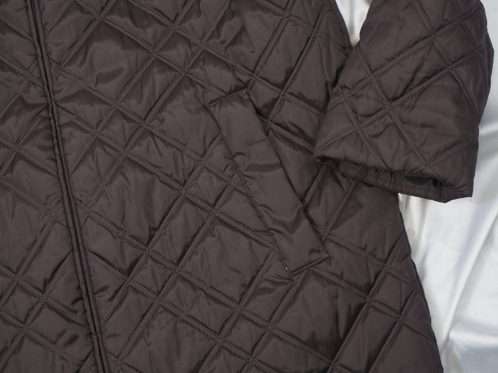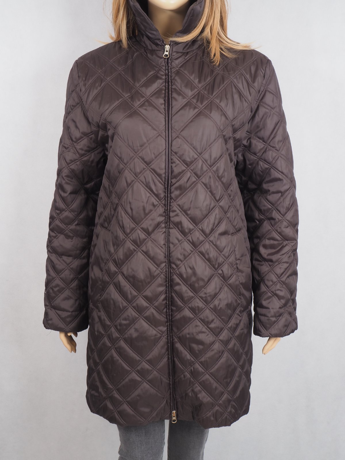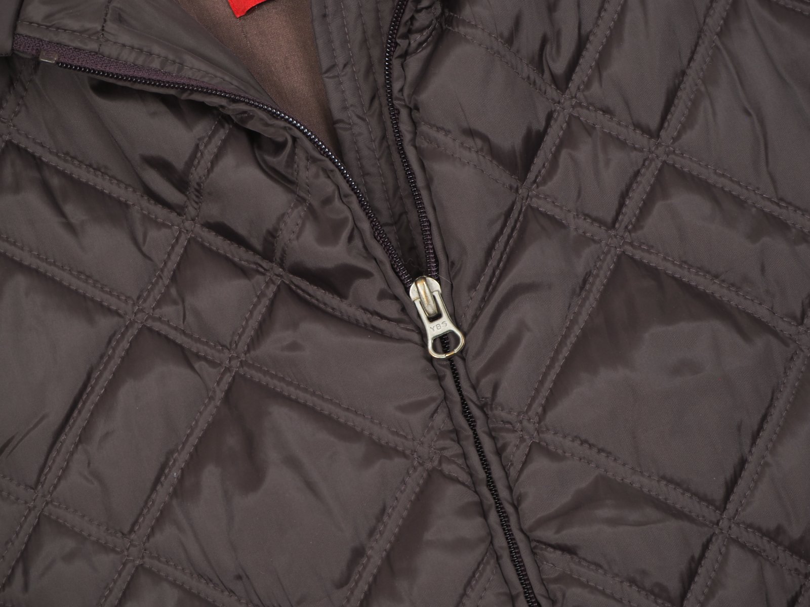 Luxusná tmavohnedá prešívaná bunda, zapínanie na zips, vredu vrecká všité vrecká, nadčasový dizajn, materiál 100% polyester, super stav.