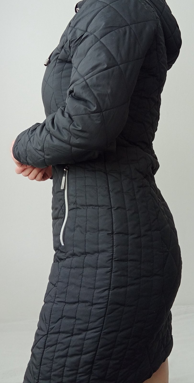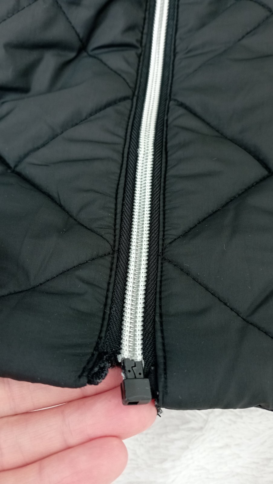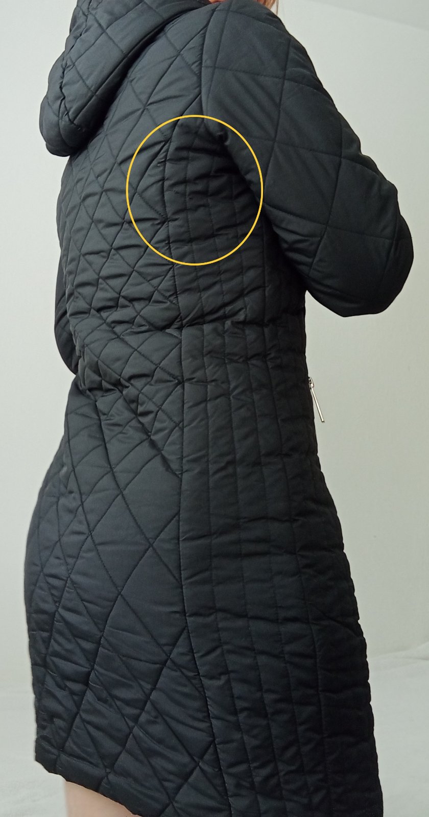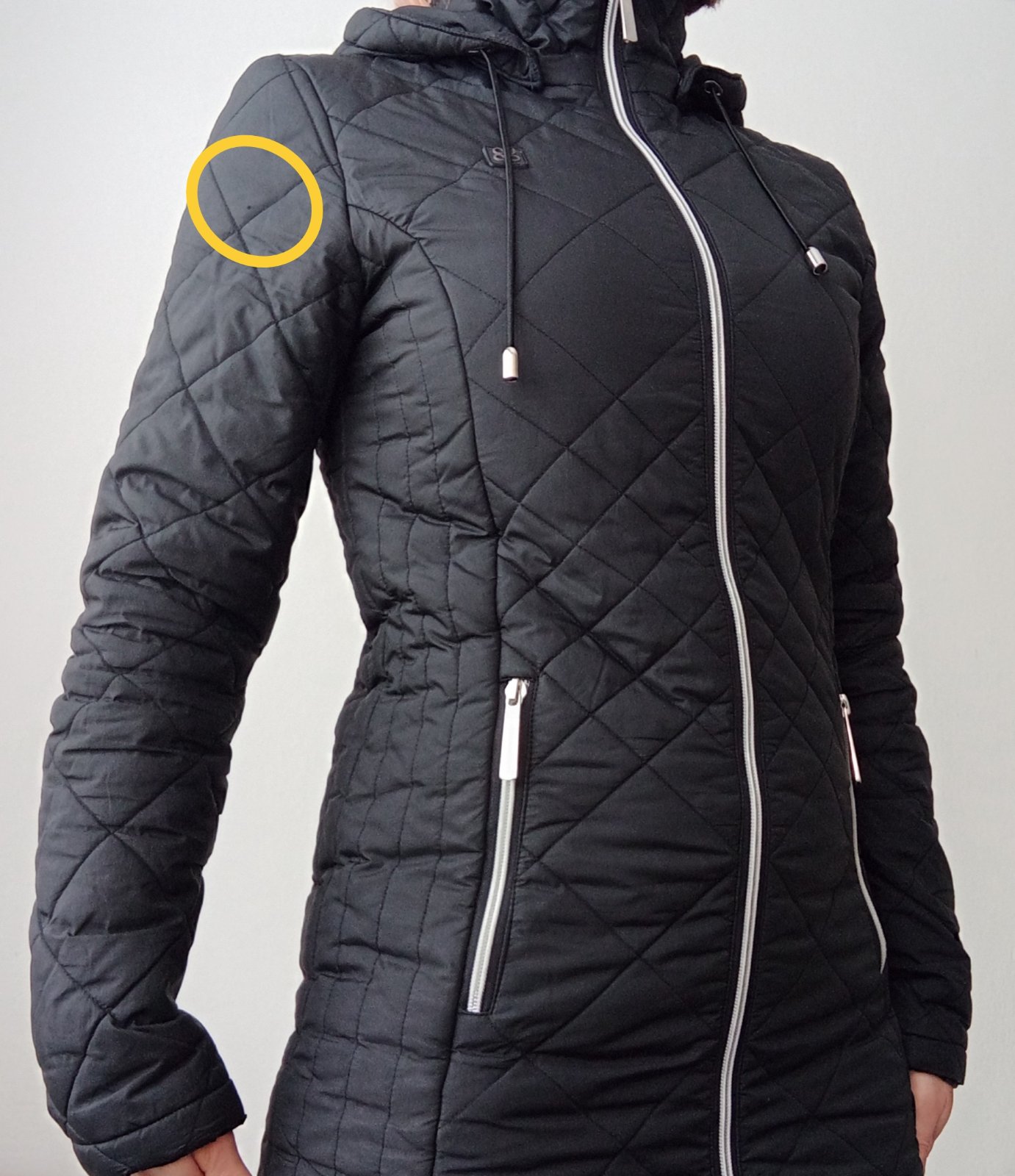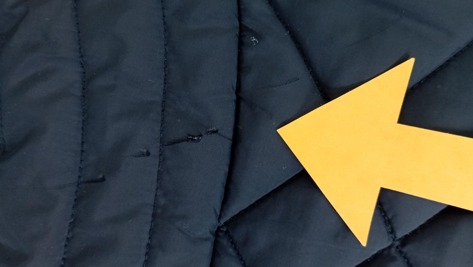 Na bunde som pri fotení objavila chybičky krásy (ukazujú šípky) 🙈 netuším kedy a ako sa mi to podarilo... Pre mňa je to nerozhodujúci detail a v prípade potreby ju ešte oblečiem. Kým nebudem mať (čiernu zimnú) náhradu....