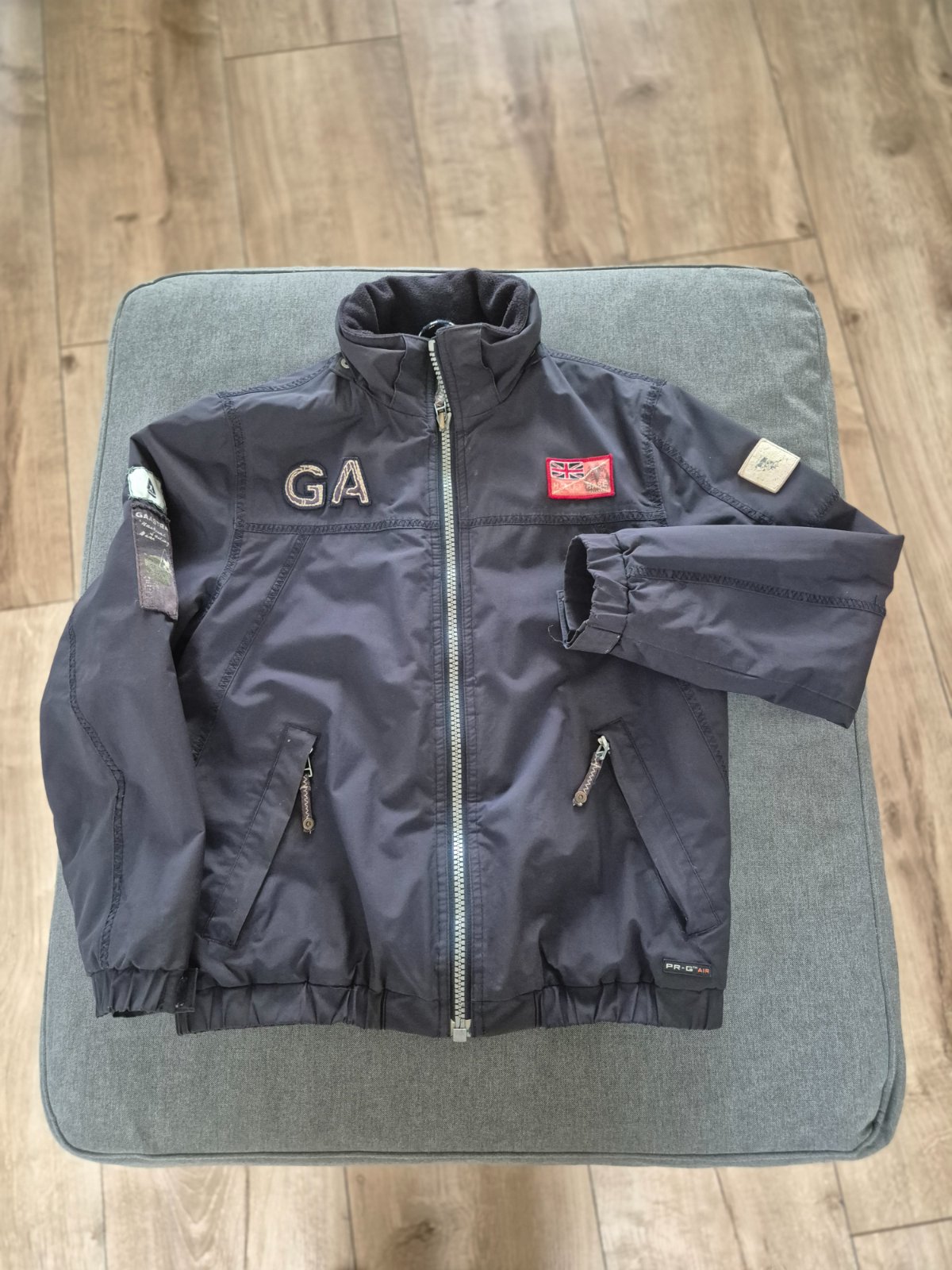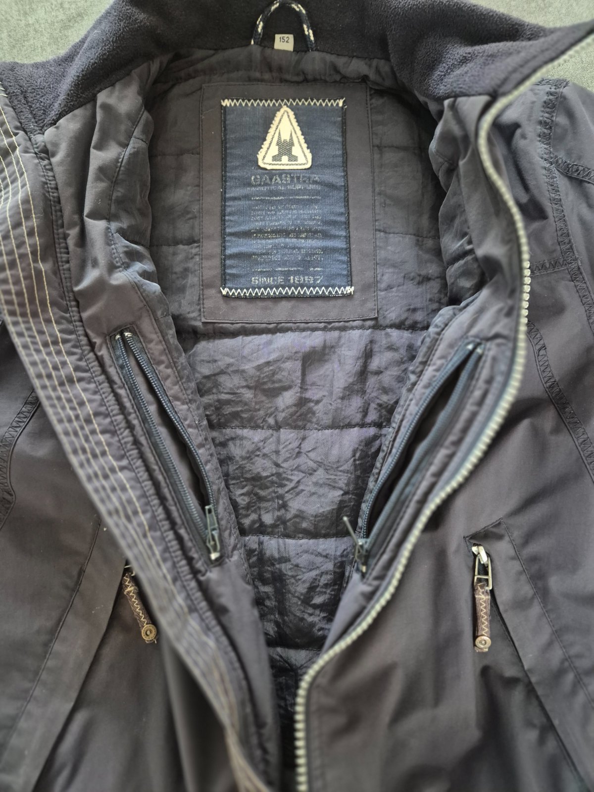 Frajerska "letecka" bunda alebo bombera zn. GAASTRA. Used pouzity vzhlad, s osuchanymi nasivkami, ale tak je to myslene.Maly ju miloval, je dost nosena, ale zachovala, este posluzi.