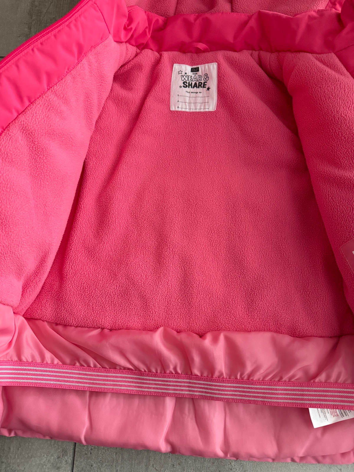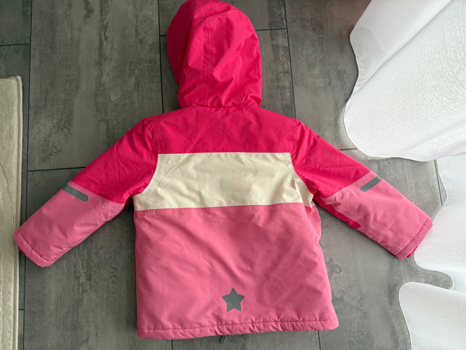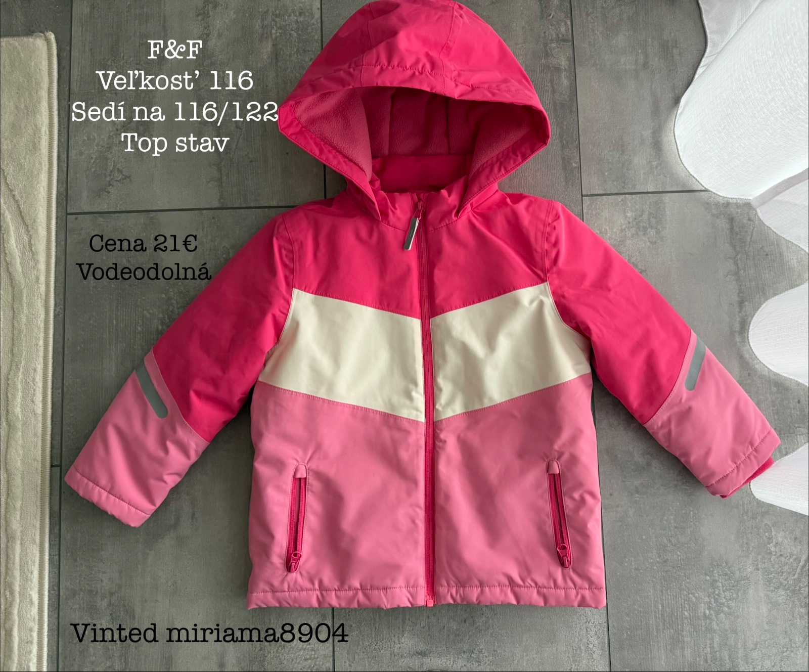 Veľkosť 116, no sadne aj na 116/122. Bundička je teplá, v top stave. Z vnútornej strany rukávu má jemnučko modré, veľmi slabo to vidno, ani sa to nedá poriadne odfotiť, len upozorňujem, pre tých ktorí majú vynikajúci zrak 😃 v prípade záujmu premerám.