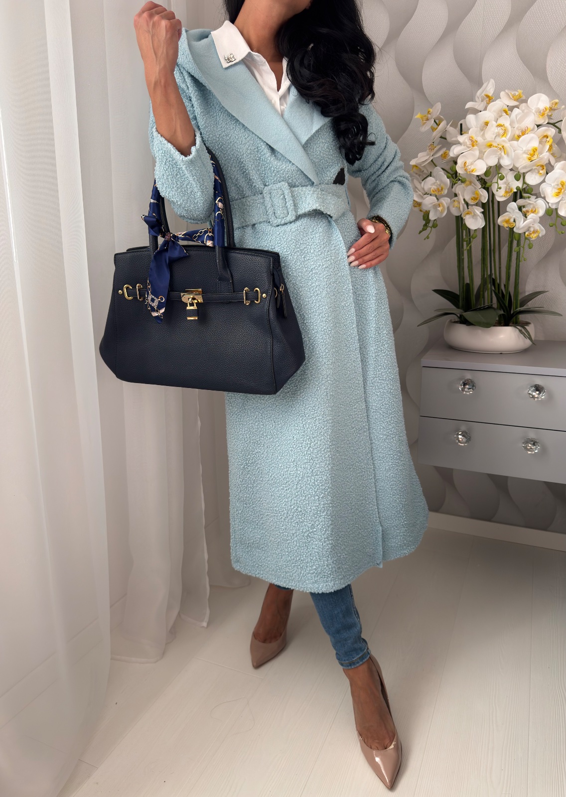 Krásny dlhý prechodný kabát vhodný na toto obdobie.