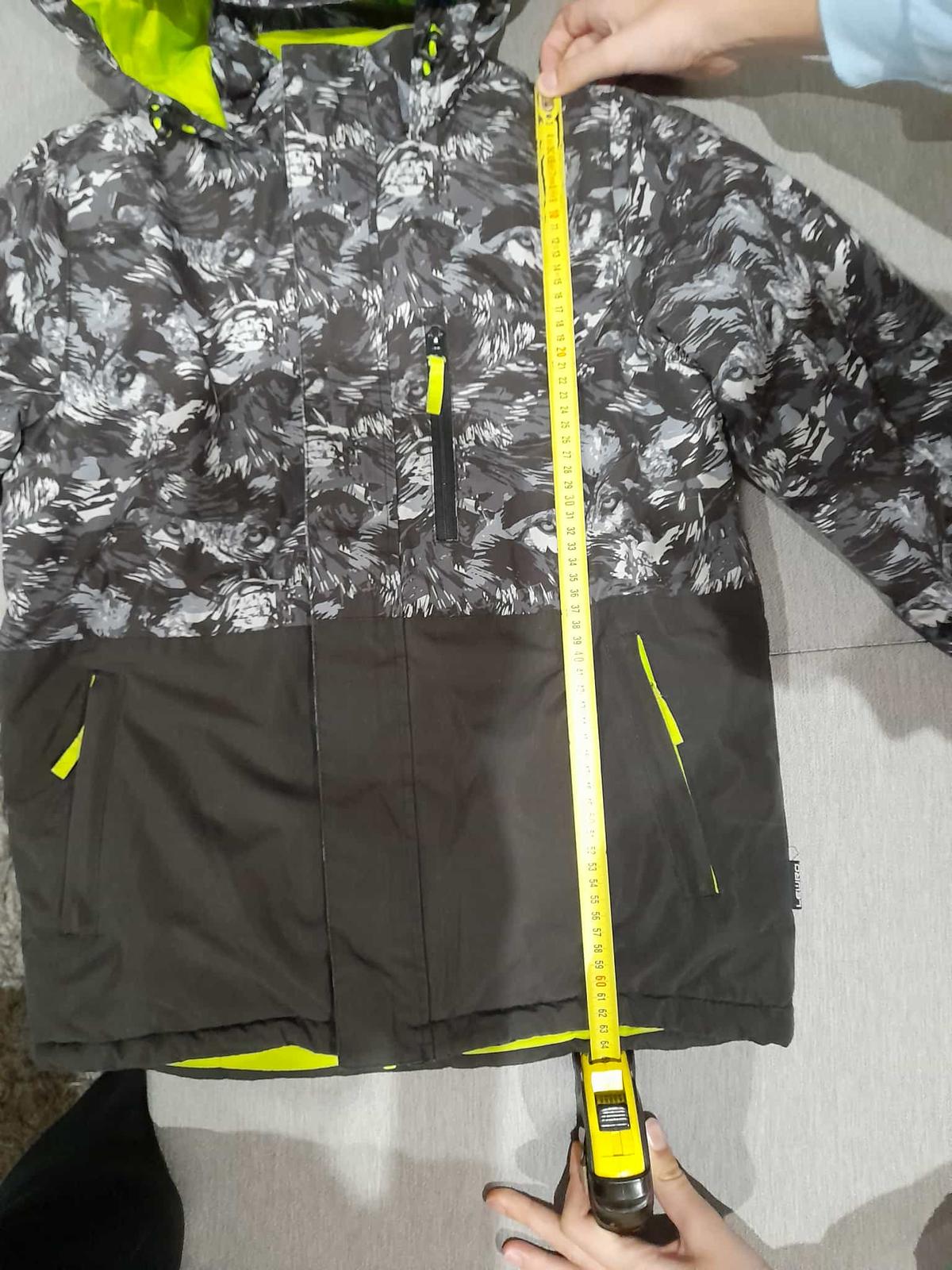 Bunda je nosena len na lyžovačku mojim synom takže je ako nova, bez poškodeni. Jedna sa o dvojčislo152/158. Dlžka bundy je 61 cm, šírka 51cm a dĺžka rukava od krku 66cm a od ramena 56 cm.