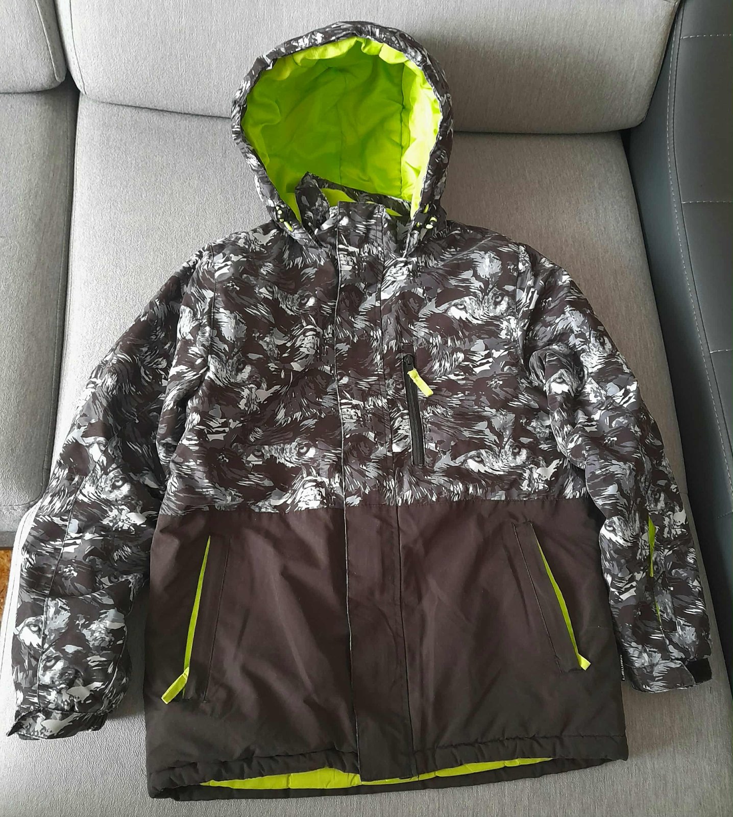 Nosená minulú sezónu mojím synom. Bez poškodení. Dĺžka 64 cm Šírka v podpazuší 2x47 cm Rukáv od ramena 57cm + vnútorný patent. Kapucňa napevno.