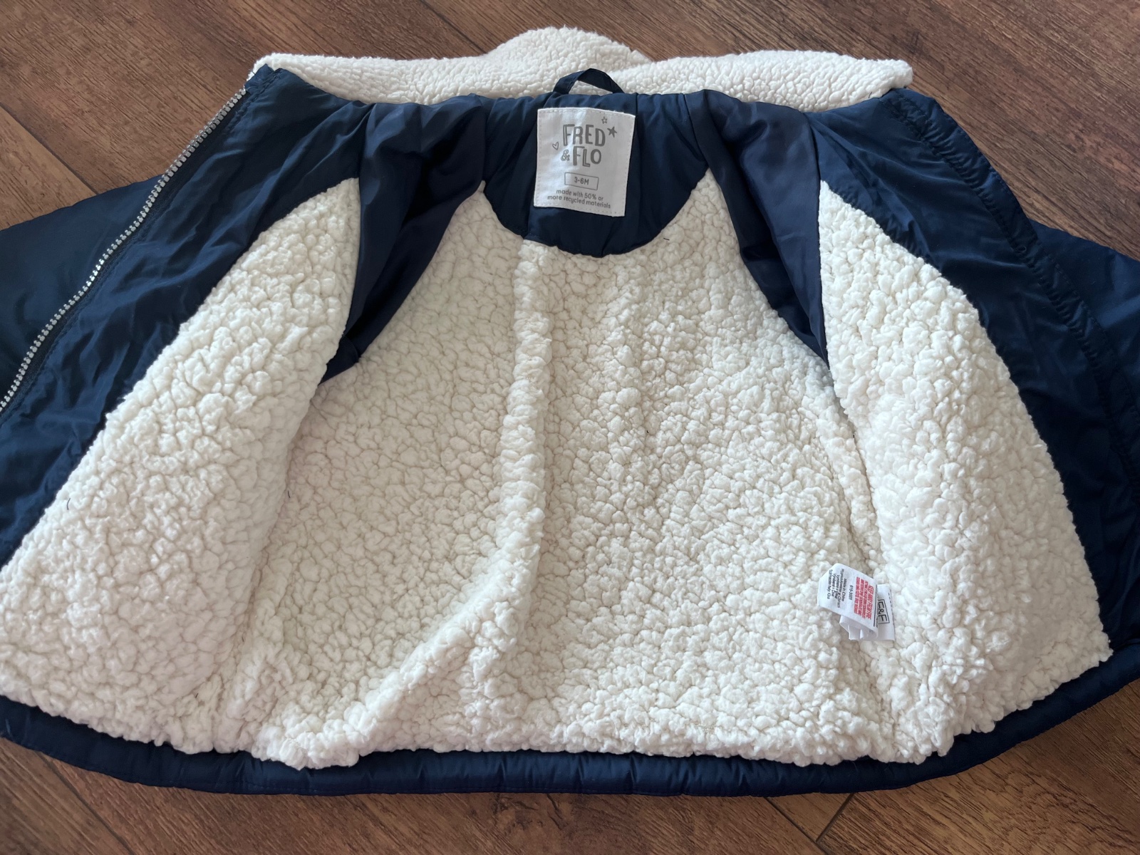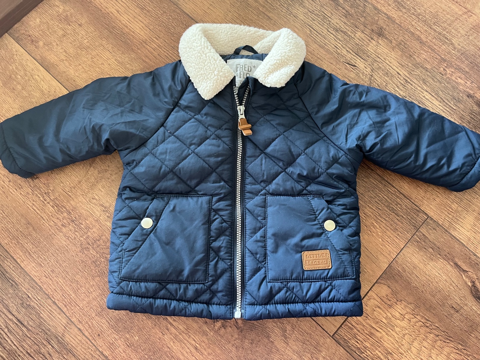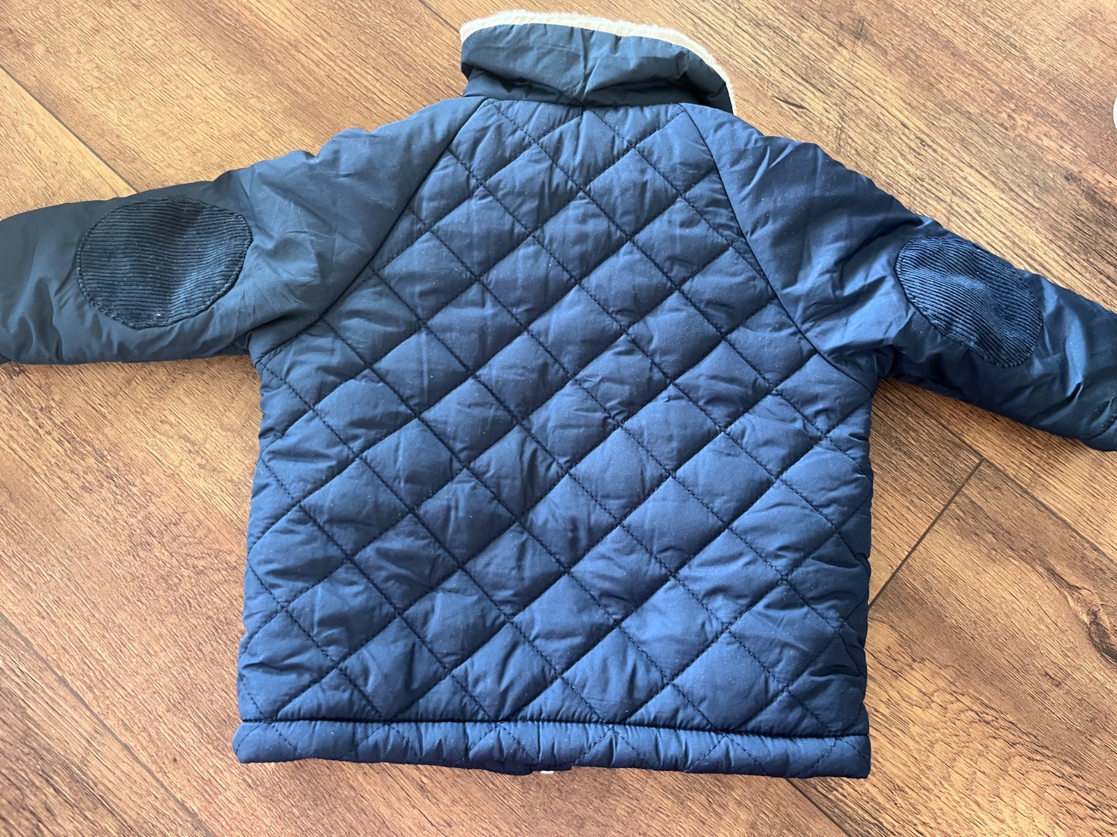 Málo nosená zimná bundička, 100% stav. Veľkosť uvedená 6-9m mes. Dĺžka 38cm zadný diel, dĺžka rukáva od kapucne 30cm, šírka 33cm.