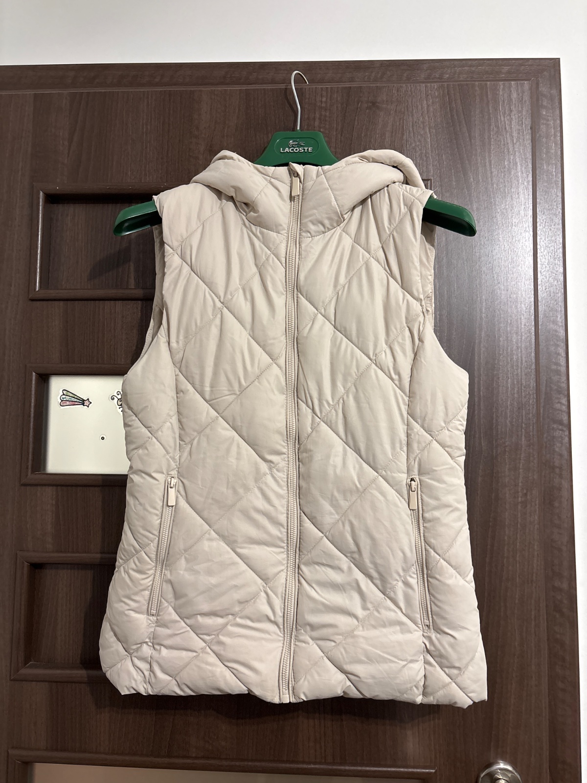 Uplne nova, este s visackou, vatovana vesta, velmi pekna, vhodna ako prechodna na jar a jesen. Sirka pod ramenami vo volnom stave je 47 cm a da sa este natiahnut do 50 a celkova dlzka je 65,5 cm. N...