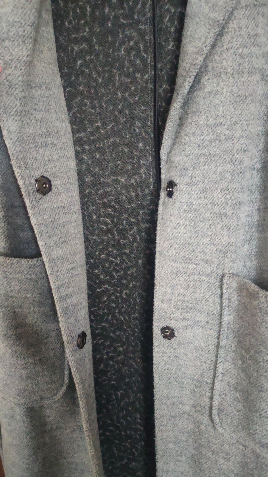 Malo noseny zaujmavy kabat v dlzke do polov. zadku, sikmy zips, je to taky hladky filc, nepodsity, kozusinka len na krku, rovný strih. V prípade záujmu pošlem foto na postave