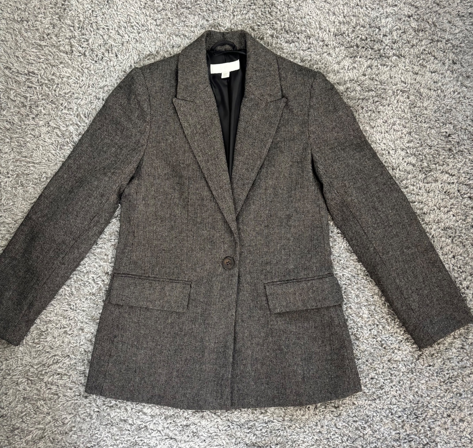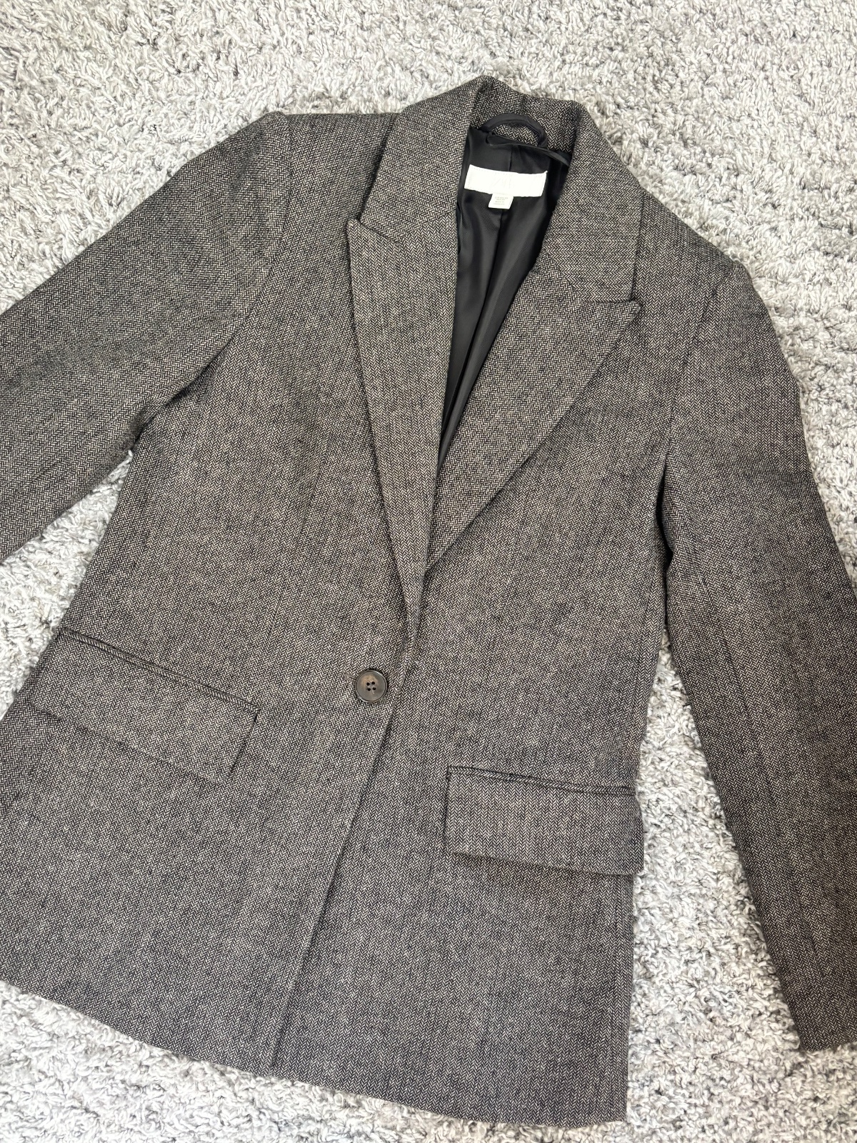Krásne hrubšie sako, len odtrhnutá visačka sedí na XS aj S. Voľnejší strih. Pc 50€.