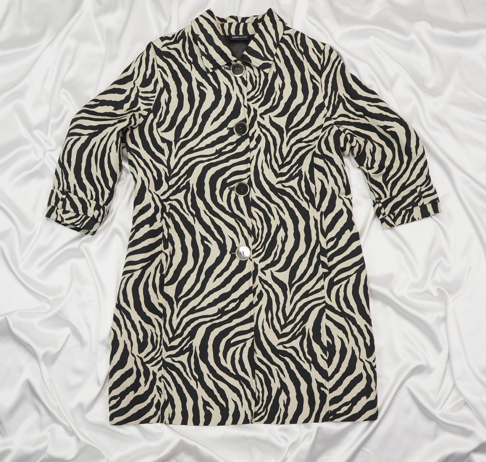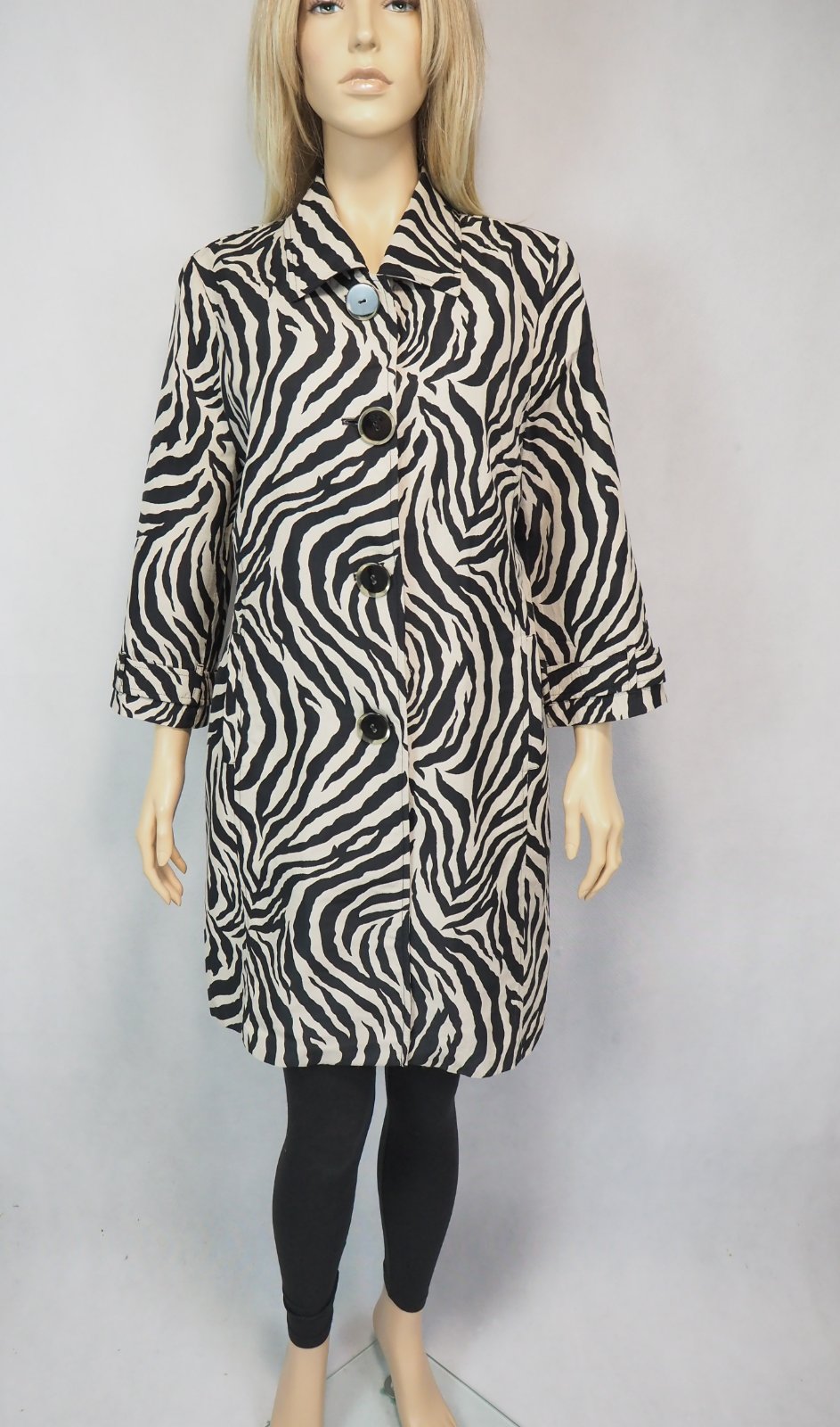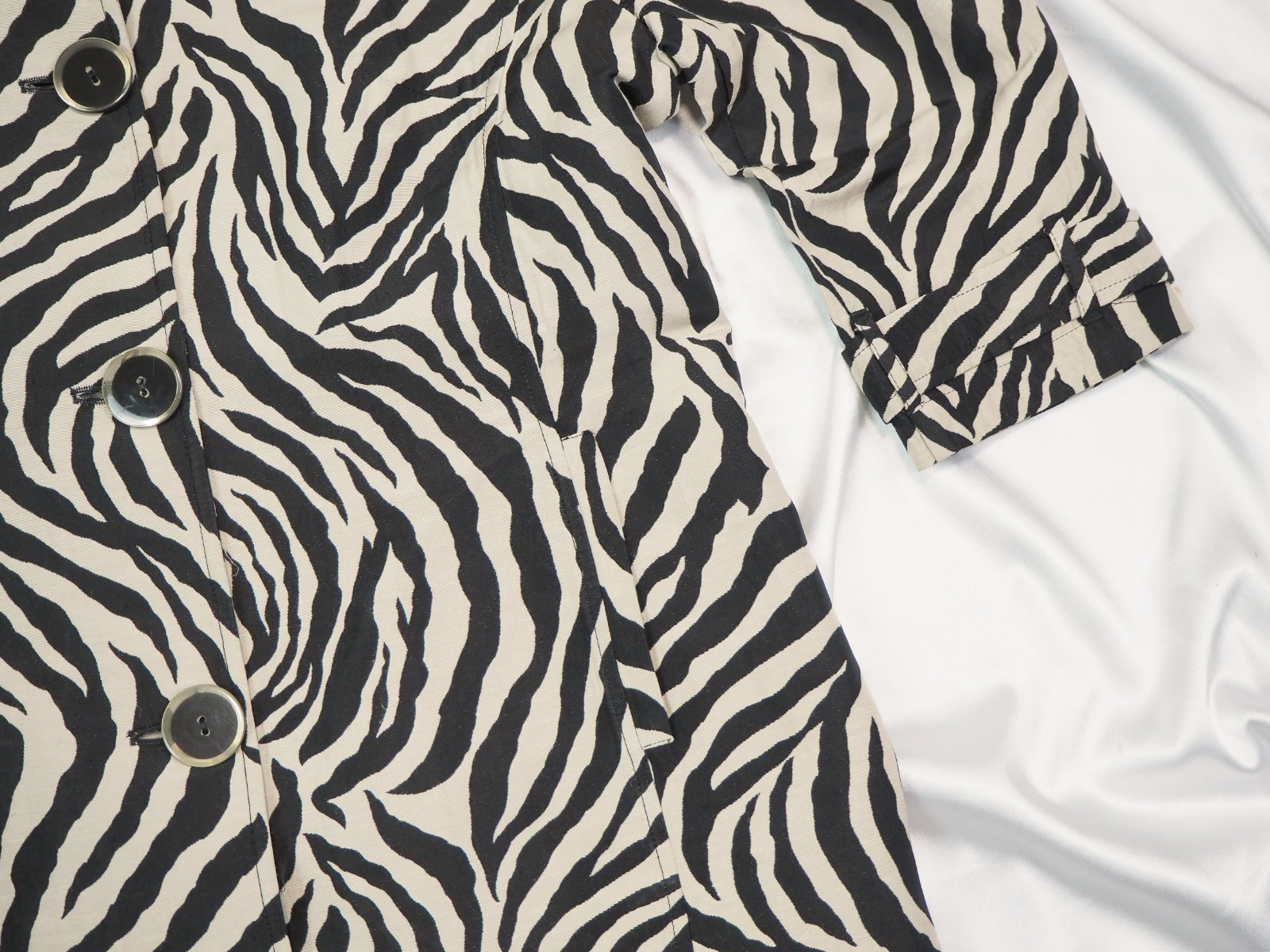 Luxusný jarný kabátik, zapínanie na gombíky, materiál 38 % viskóza, 34% acetát, 28 % polyester, super stav.