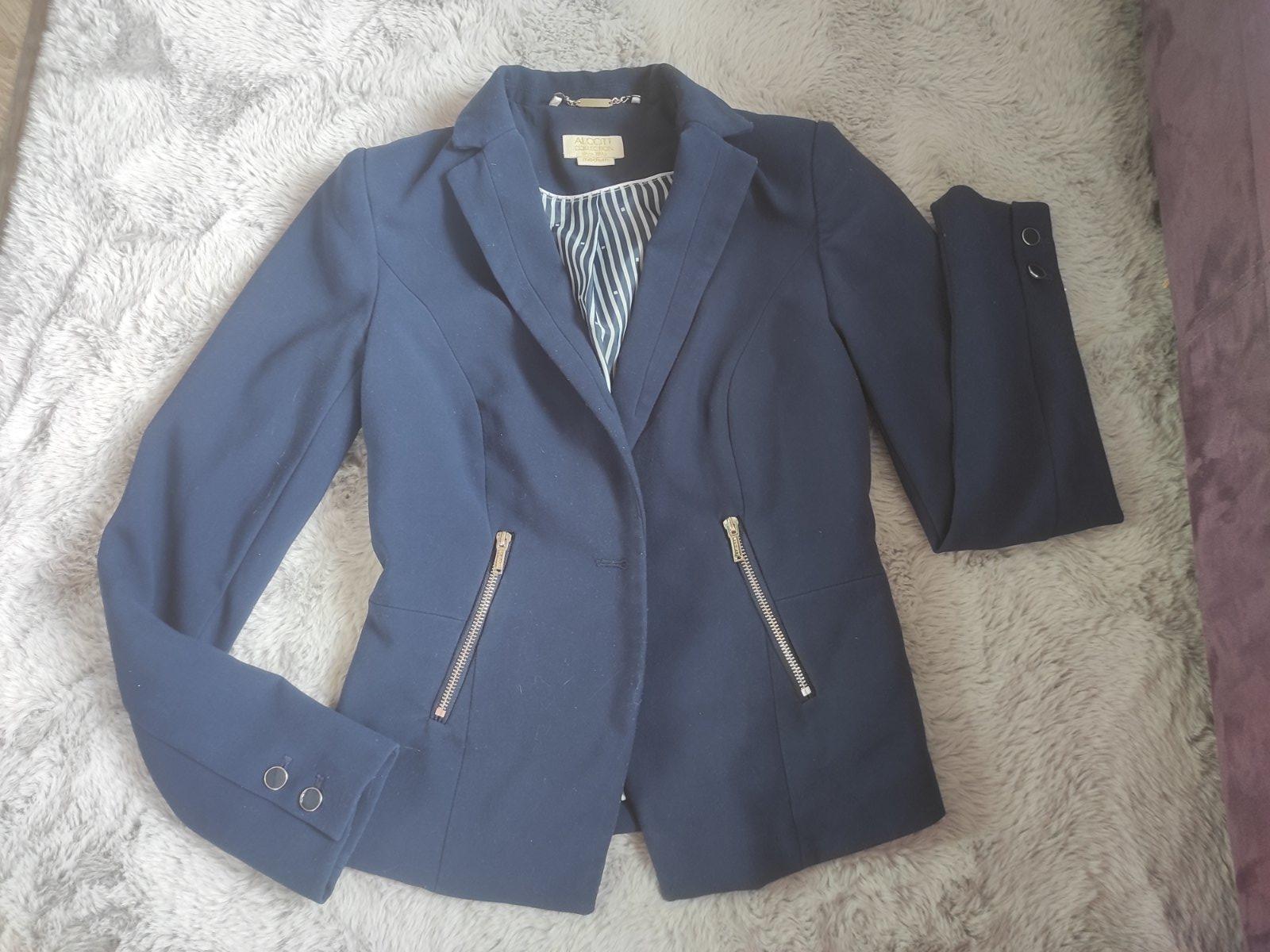 Predám pekné sako, je podšité, kvalitné, farba je sýta tmavomodrá, na 2 gombíky, v super stave.