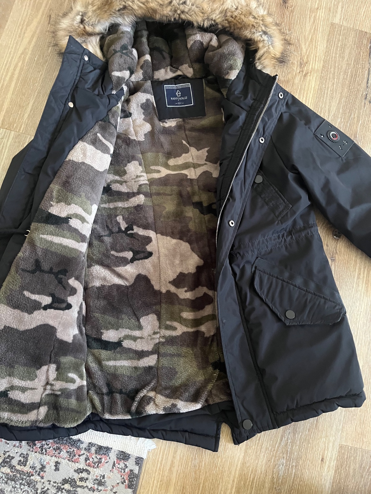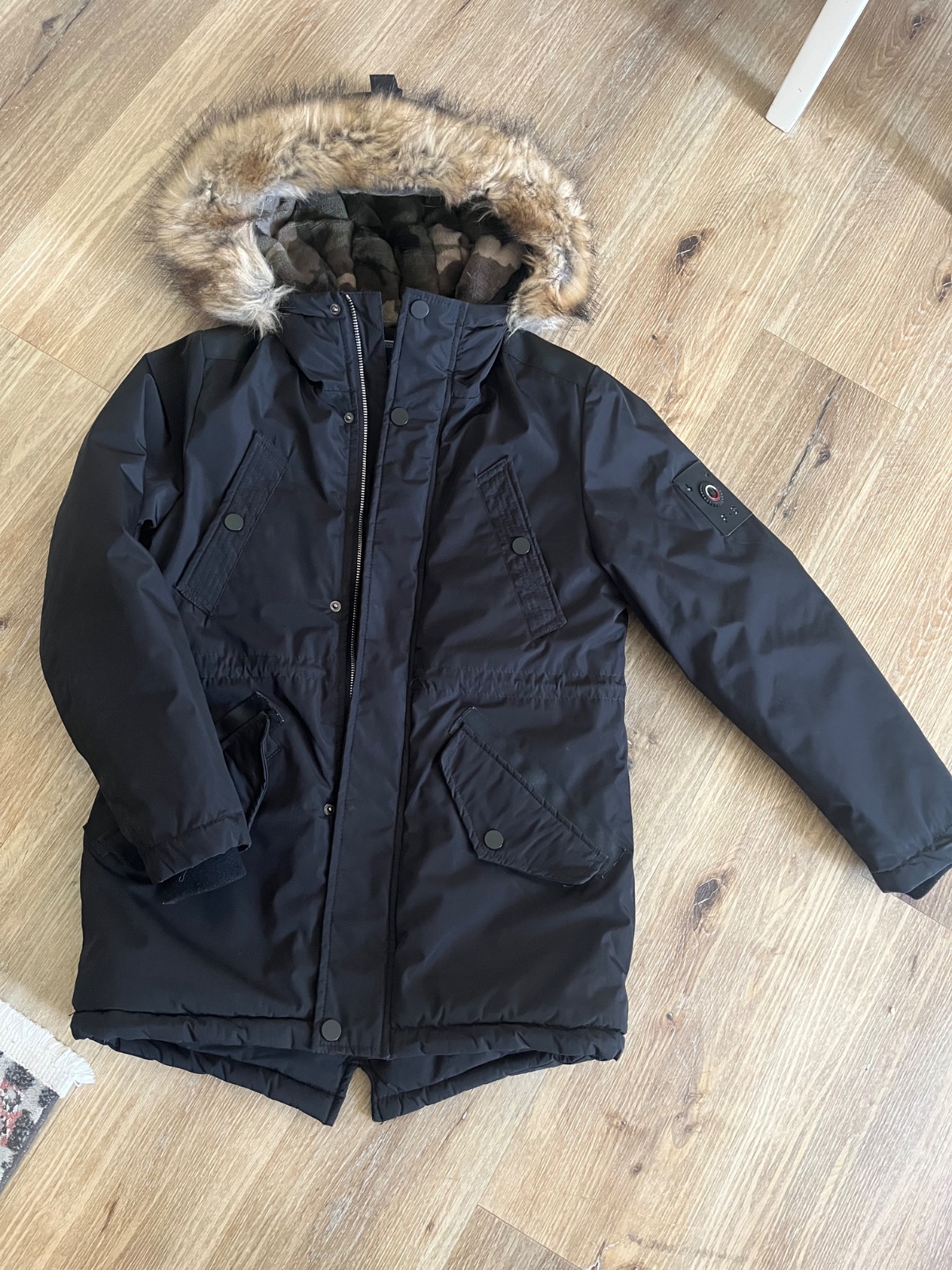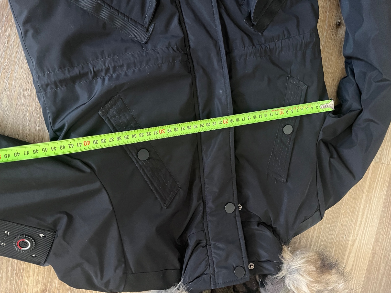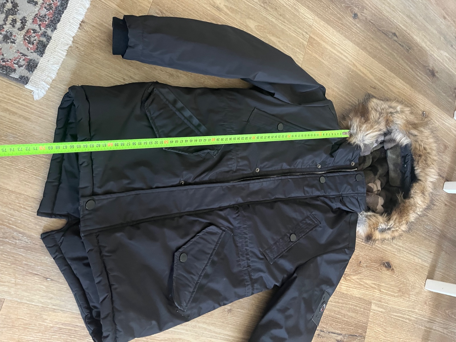 Nosena jednu zimu.. Absolútne neposkodena. Mali sme na vymenu ešte jednu bundu... Bola nosena len do školy... Dĺžka 65 cm