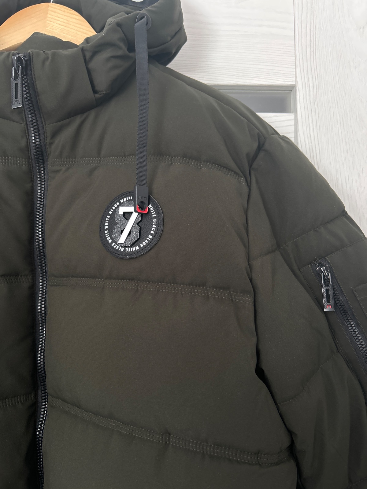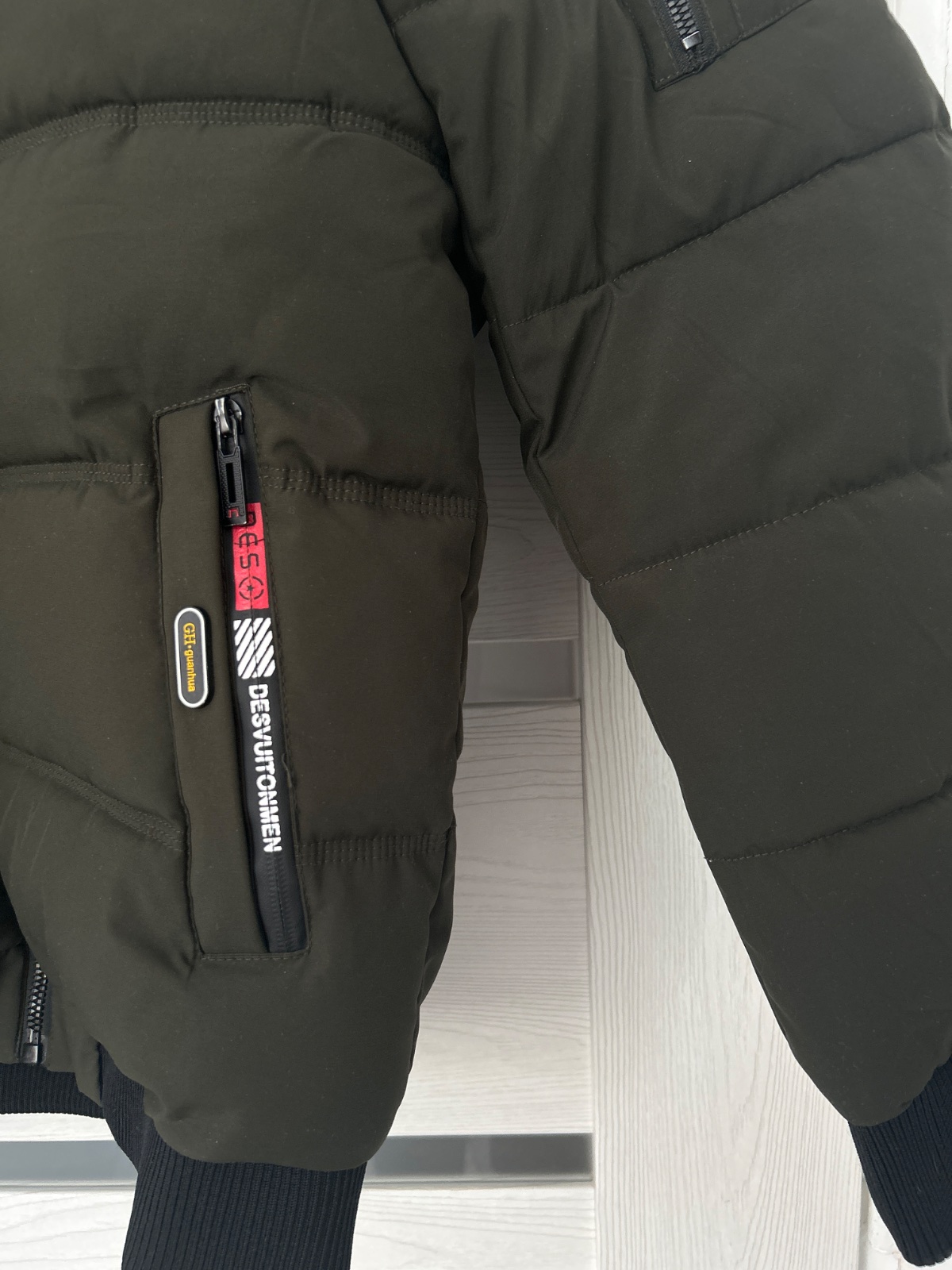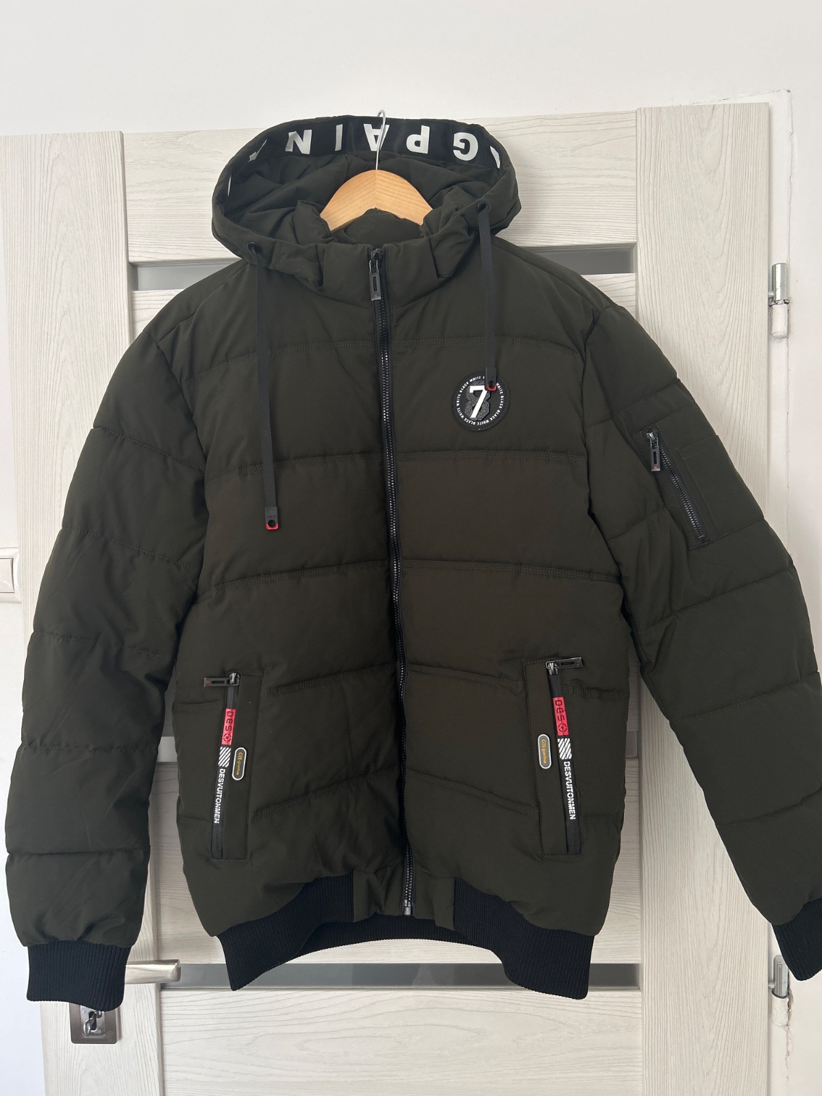 Oblečená cca 3x.Má odnímateľnú kapucňu,2 vonkajšie,2 vnútorné a 1 vrecko na rukáve na zips.Rukávy sú ukončené patentami.
