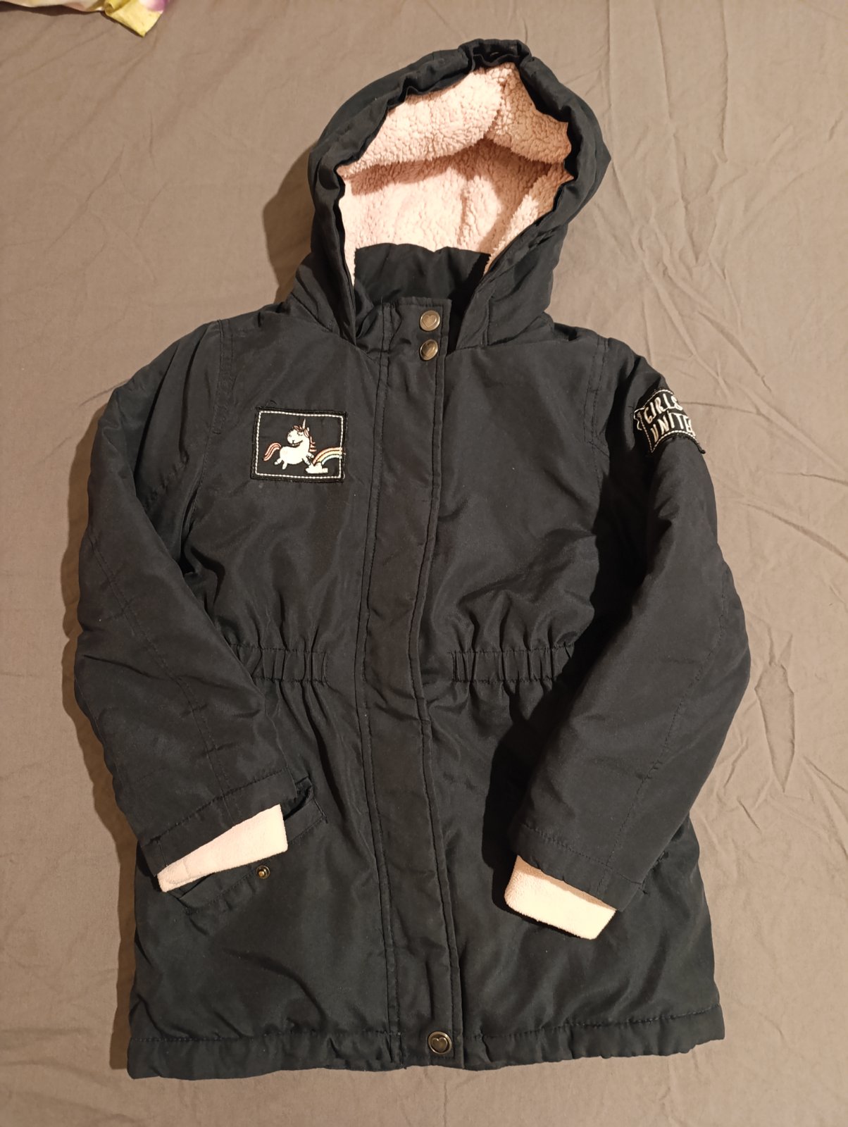 Teplucka bundicka/ kabatik. Nosena, zachovala. Bez poskodeni, len na fleece je vidno ze bola nosena a zvnutra je podpisana. *MICK*