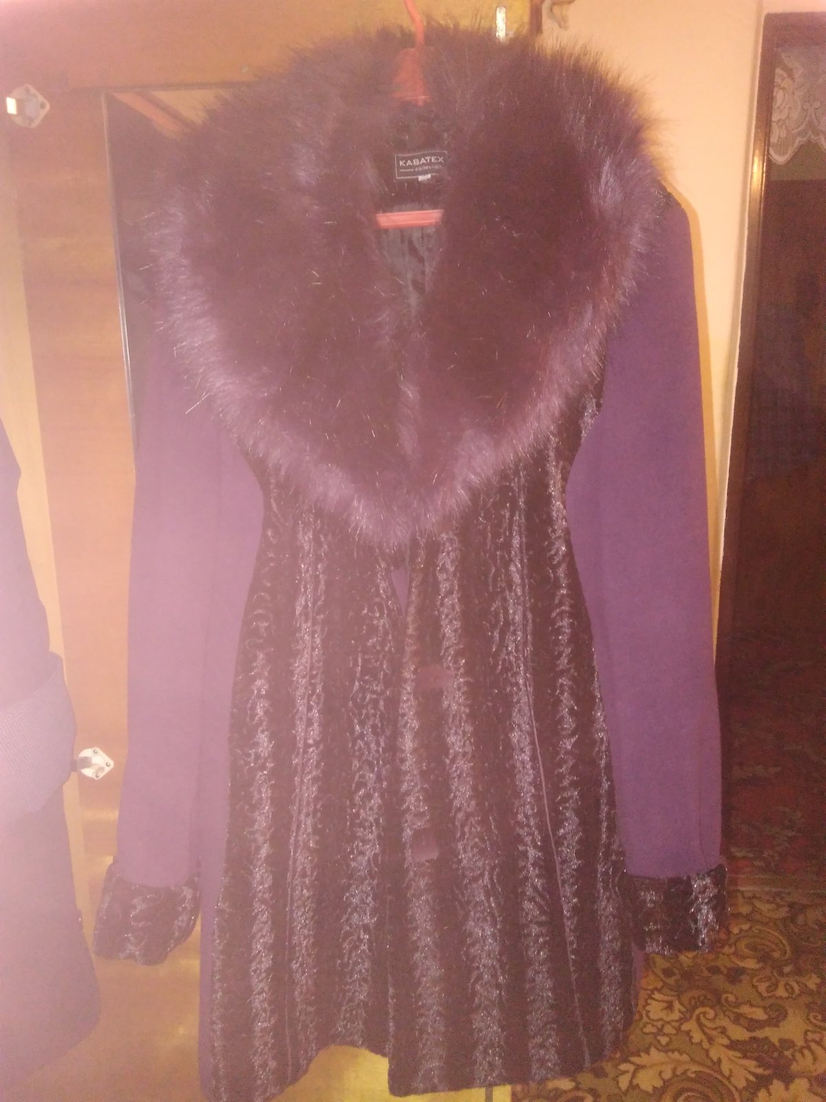 Predám fialový kabát, kupovaný v Tescu, málo nosený. Cena 13,90 euro.