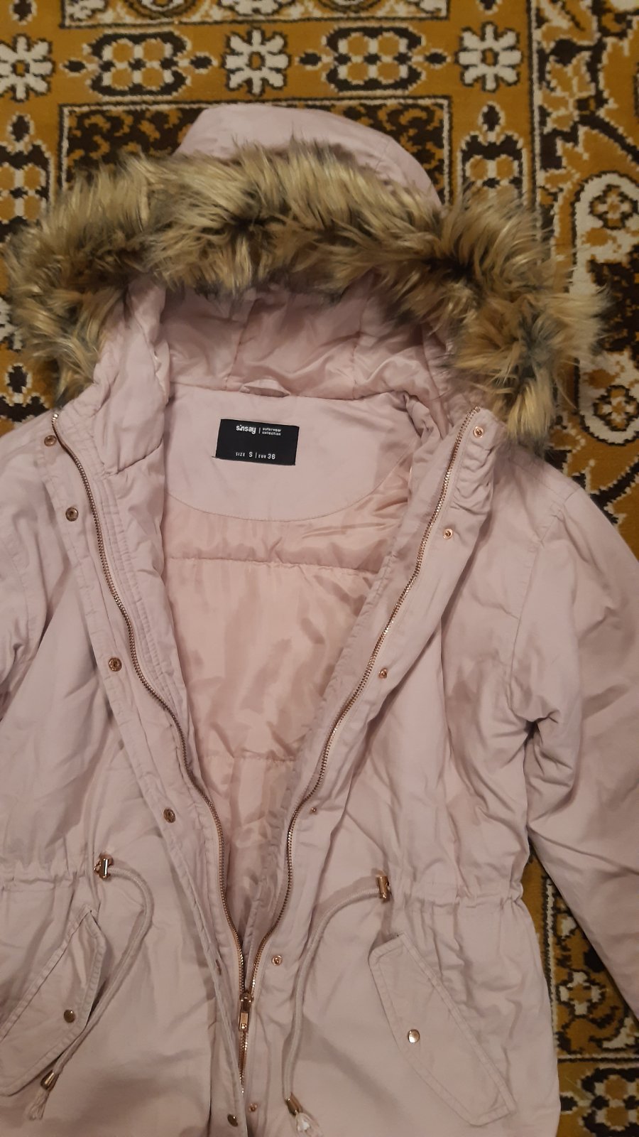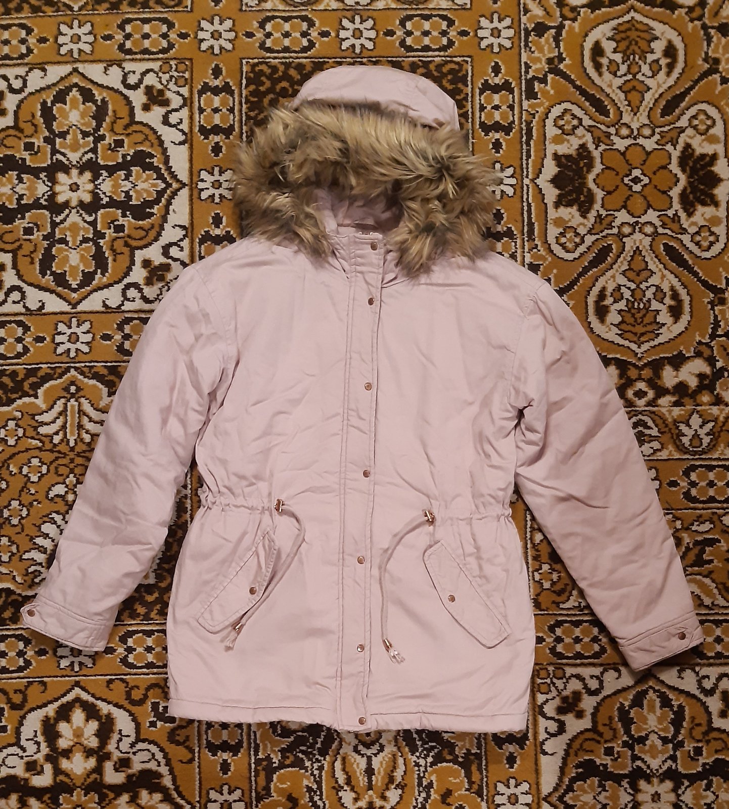 Pekná bavlnená bunda, stiahnutá v páse, top stav, krásna kožušinka