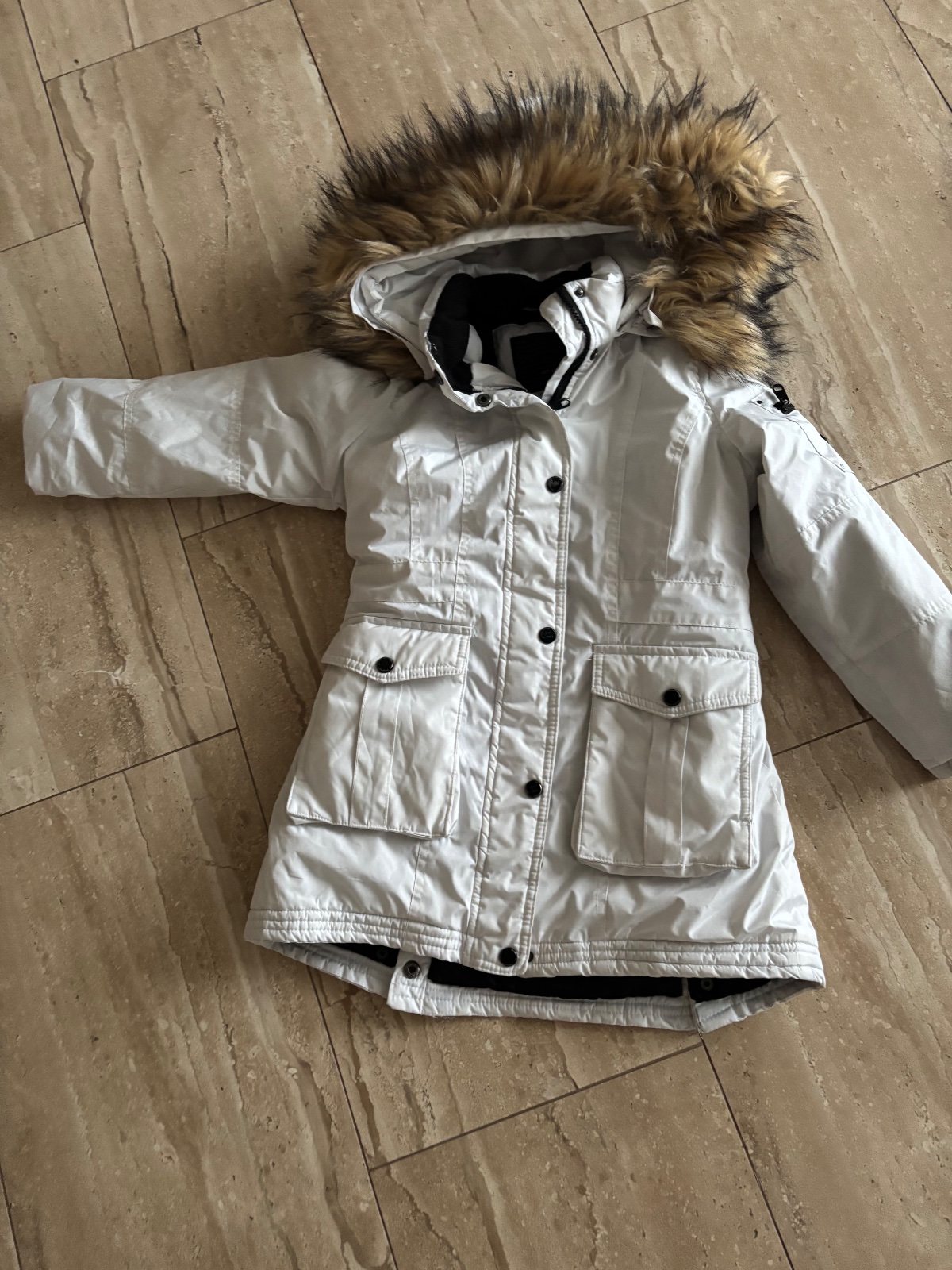 Krásna bunda, mega teplá do -20, bežné známky nosenia, bohatá kožušina , dovoz z USA, veľkosť 7-8 rokov, povodná cena 150€