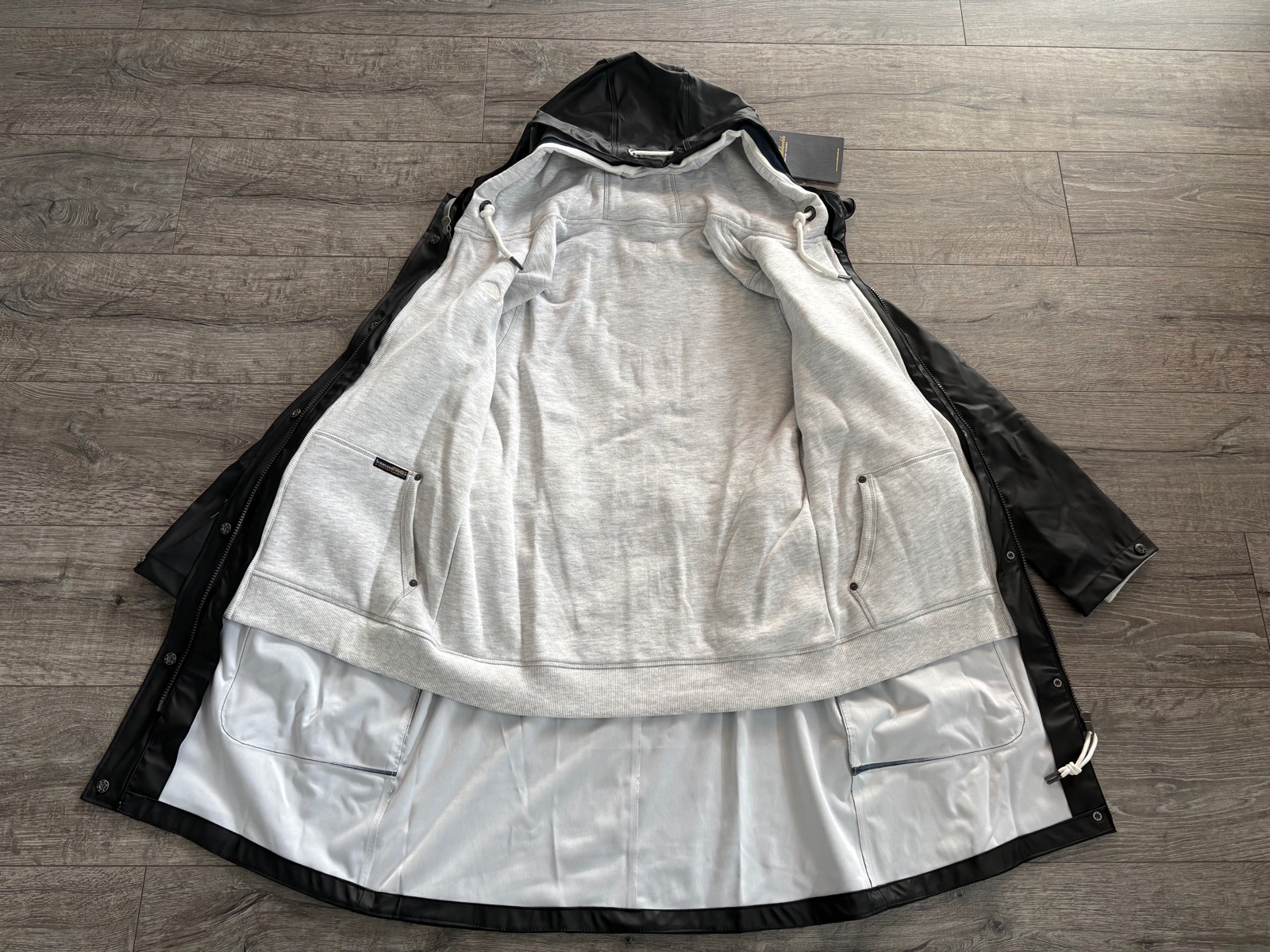 Tento kabát od Schmuddelwedda je o tímovej práci, pretože funkčný pršiplášť má partnera, ktorý je po vašom boku aj v chladných alebo daždivých dňoch. Podľa hesla: "Dvaja sú lepší ako jeden" je do vetru a vodeodolného krátkeho kabáta na zips integrovaná mikinová bunda, ktorú môžete nosiť aj samostatne. Takže máte bundu do dažďa, bundu s kapucňou a bundu do dažďa s pevnou vnútornou bundou. Okrem tejto dvojitej výbavy má kabát veľkú kapucňu so šnúrkou a šnúrkou, ako aj veľké vrecká s chlopňou na patentky. Úzka dlhá forma sa dá upraviť pomocou šnúrky v páse. Logo doplnky s láskou k detailu, ako sú gravírované patentky alebo logo odrážajúce svetlo, sú nielen funkčné, ale aj príjemné na pohľad.