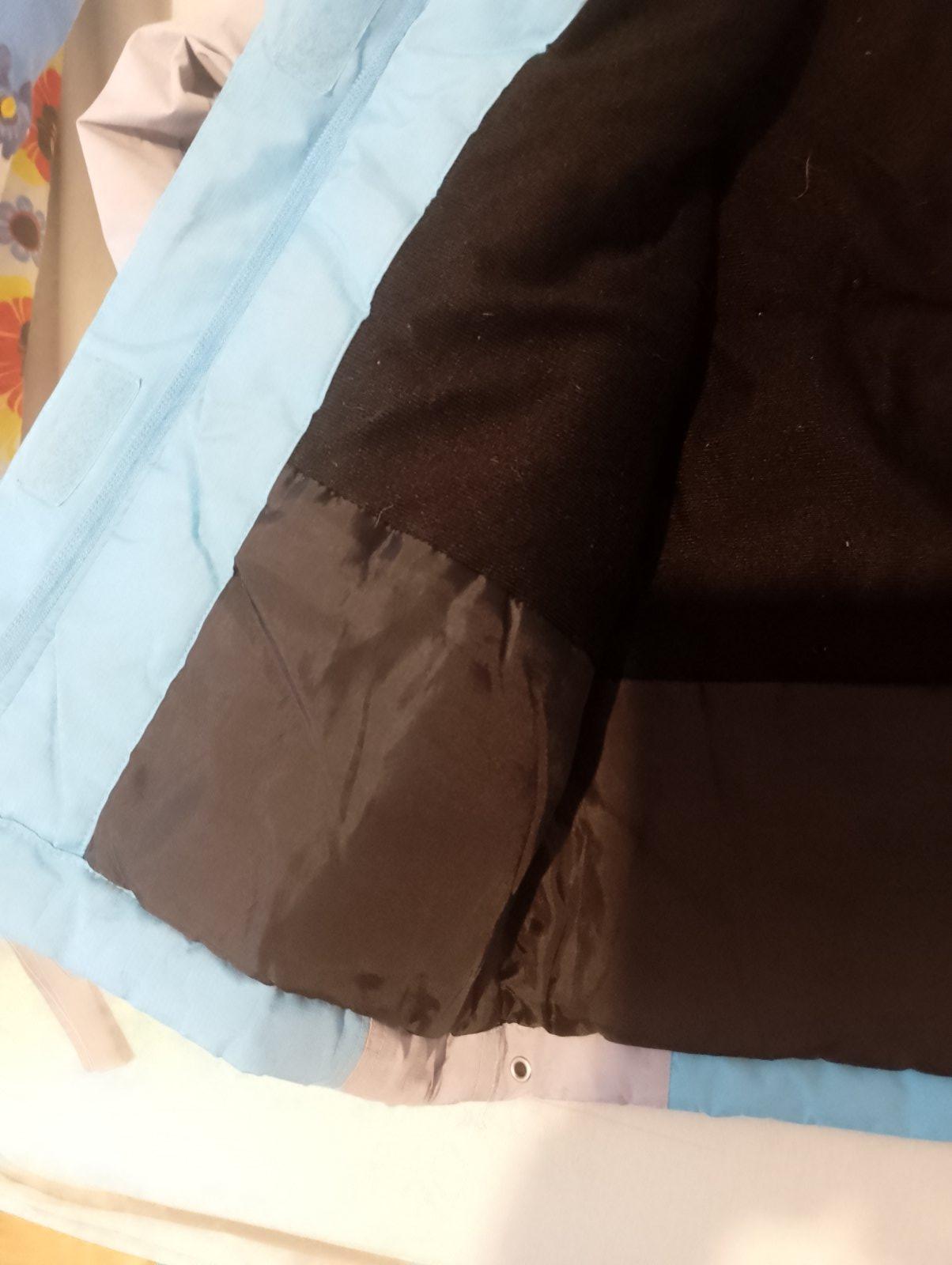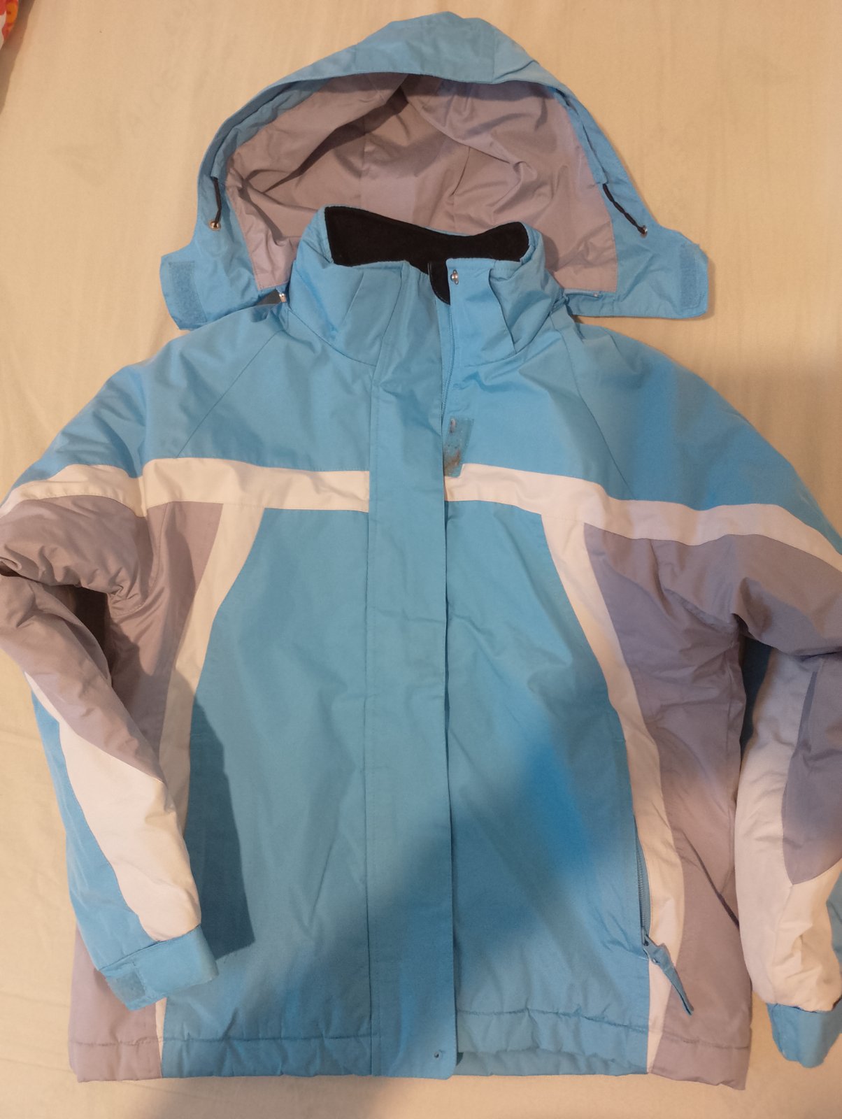 Pekný malo noseny stav teplá, vhodná na zimné športy, kapucňa odnímateľná. Dĺžka 60 cm, šírka 49 cm, dĺžka rukáva 62 cm
