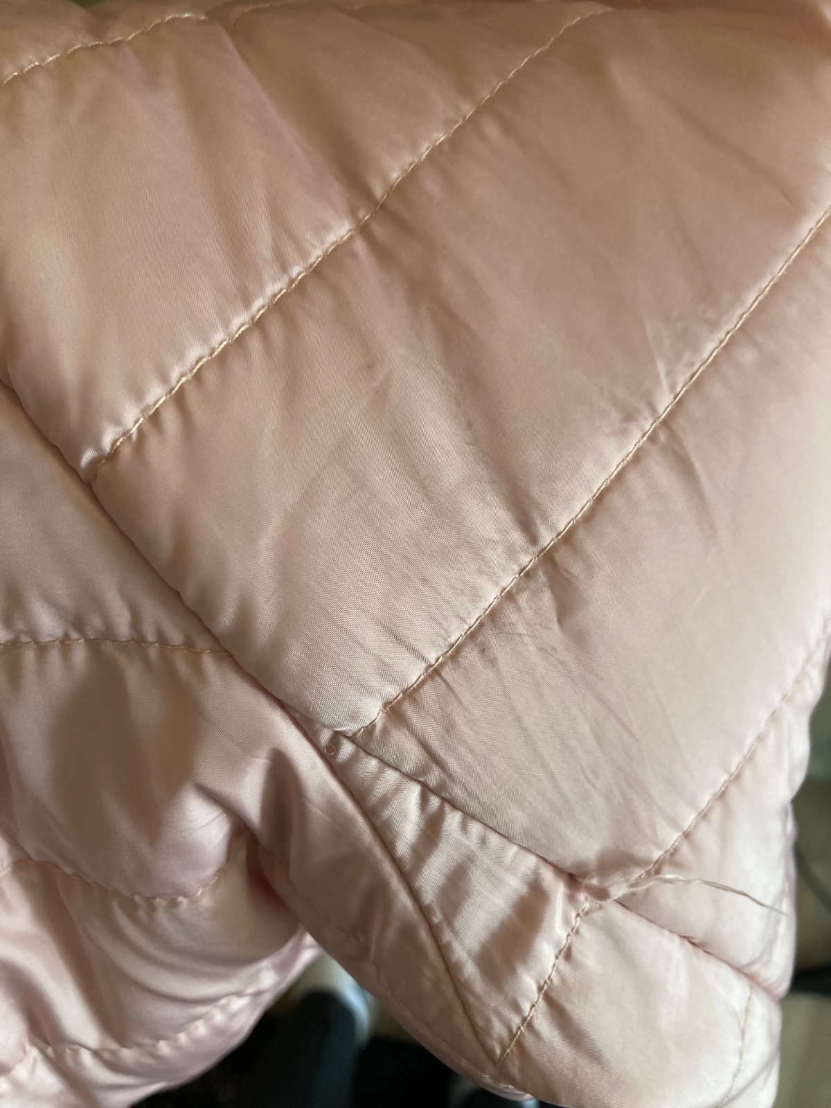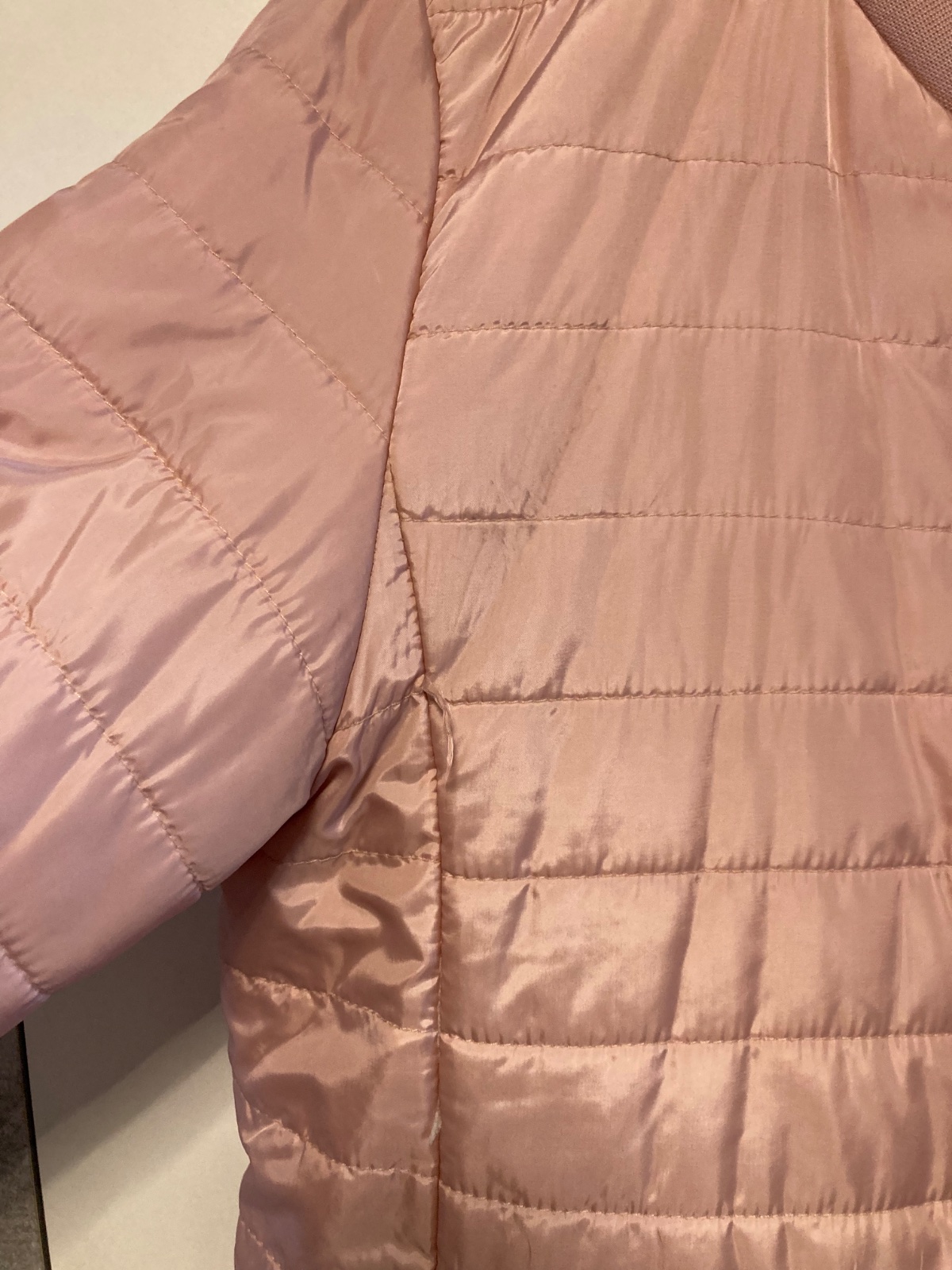 Krásna bledunko ružová farba..oblečená raz alebo dva krát..a opratá,nenosená mne je veľká,a uskladnená..šírka cez prsia 55cm,,merané popod pazuchu..pri pazuche (pod)čierny fľiačik..neviem čo to je..asi od ruksaku otlačené.je to na jednej strane..snažila som sa pofotit všetko..možno sa dá lepšie vyprať,odstrániť niečim na škvrny neskúšala som,ale nič strašné,nieje to tak ani veľmi vidieť.foto priblížená..inak krásny stav.bola nosená ozaj máličko.max.dva krát.