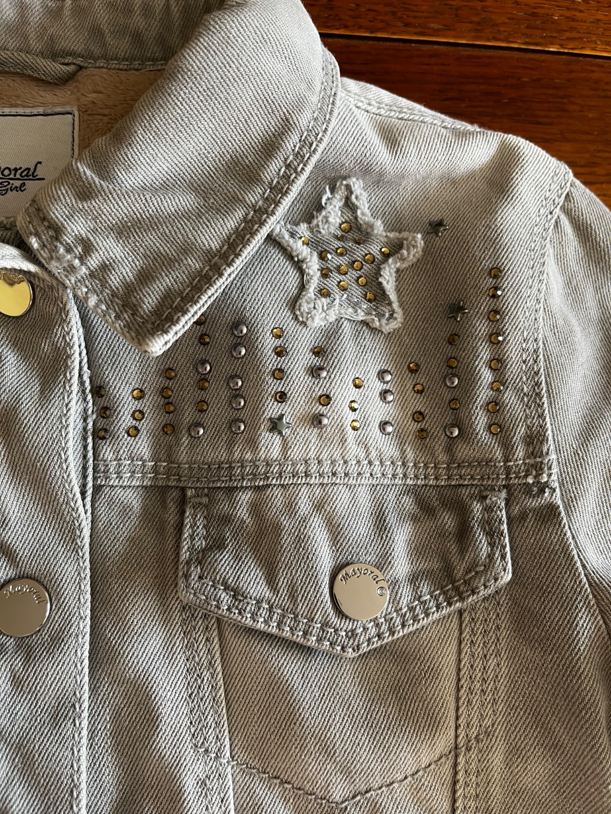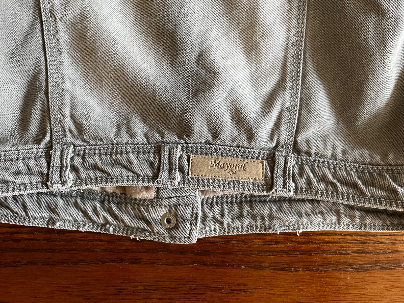 Zapínanie na ozdobné nity a nápisom Mayoral Chix a kamienkom.