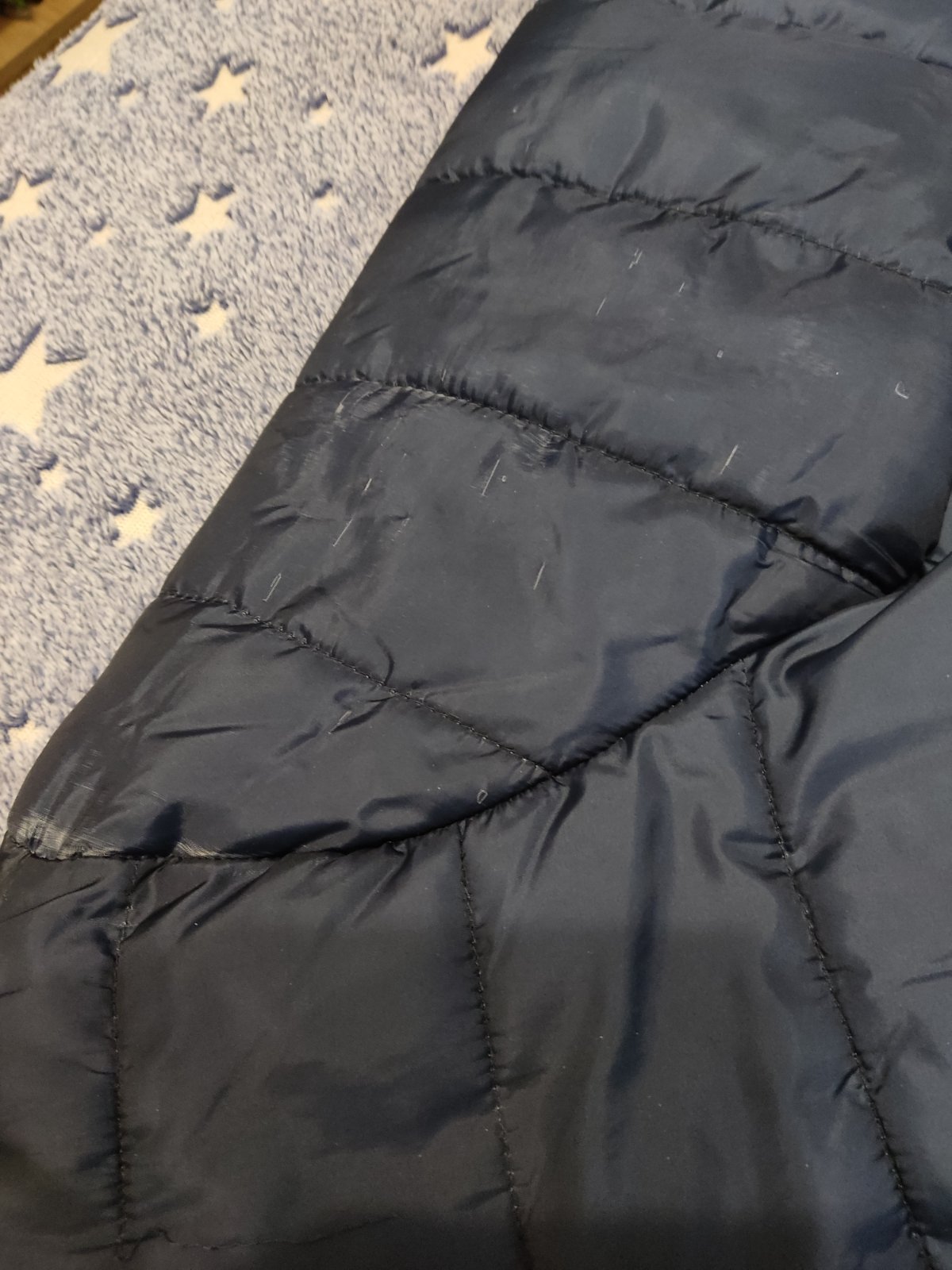 Prechodná bunda č. 164. Vatovana a podsita fleesom, vhodna aj na miernu zimu. Kvalitna a pekne sedi. Celkovo super stav ale napredu ju maly roztrhal tak som zasila, je to vidno na foto. Preto taka ...