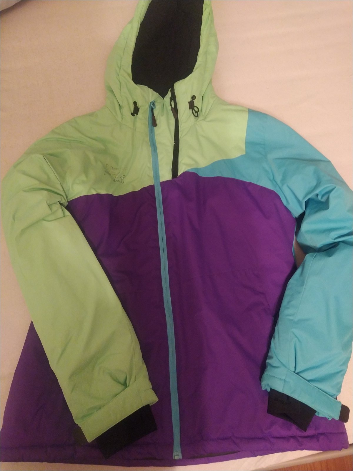 Predám dámsku lyžiarsku bundu zn. Justplay vel. XL vnútri oteplena fleesom, pekný stav. Všetky zipsy funkčné, jediné drobné poškodenie napis na chrbte vyblednutý a jedna tmava bodka blízko kapucne....