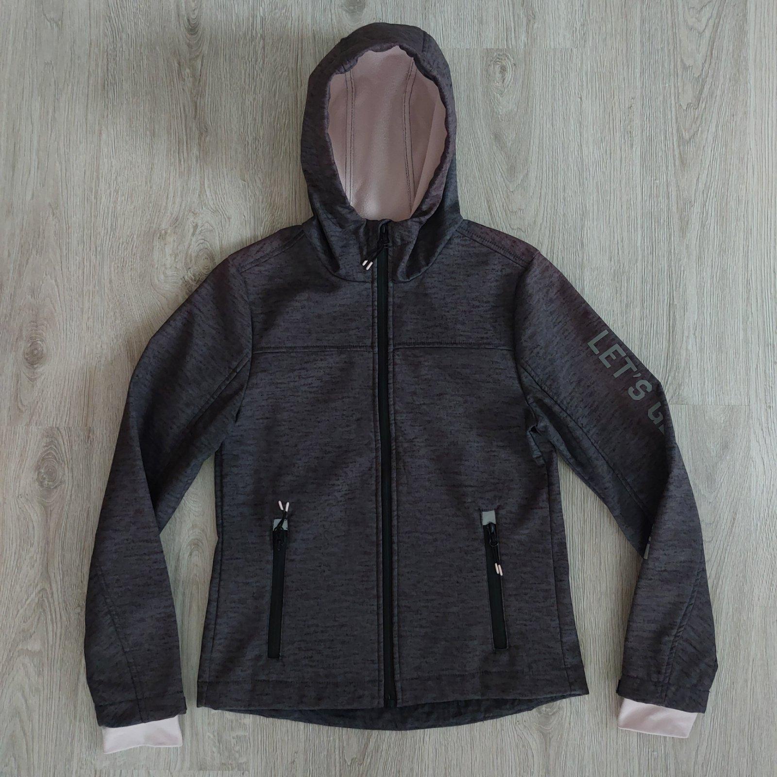 Kvalitná softshellová bunda v top stave, bez poškodení, mali sme dve rovnaké na striedačku. Farba pekná sýta tmavošedá. Veľkosť 146/152 , takže určite ponosíte dlhšie.