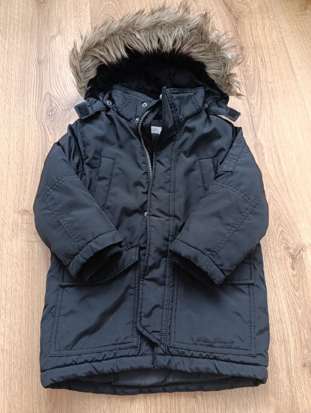 Zimná bunda, podšitá flísom, Teplučká, bez poškodení. Na rukávoch patenty. Zadný diel predĺžený. Málo nosená. Reflexné prvky na rukávoch a chrbte. Vetruvzdorná, vodeodolná. Veľkosť 3-4 roky. Bez po...